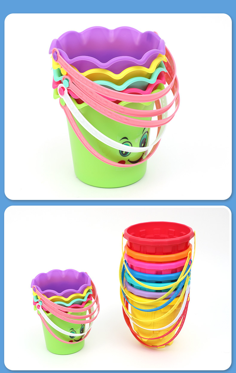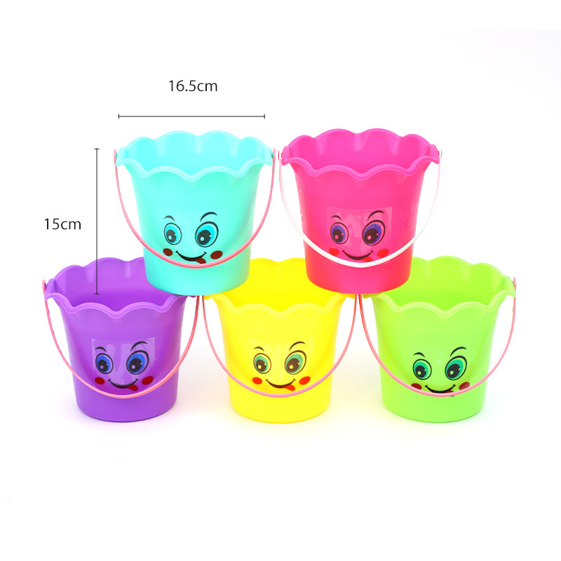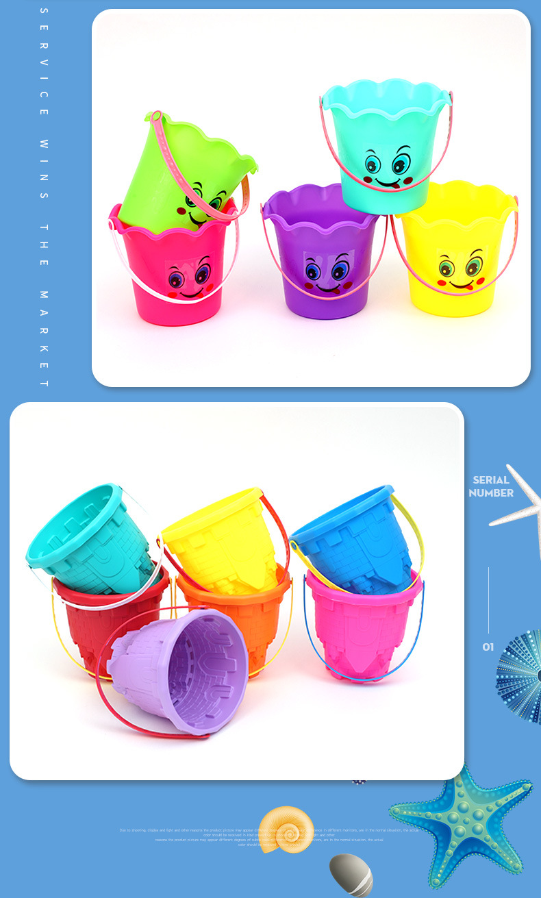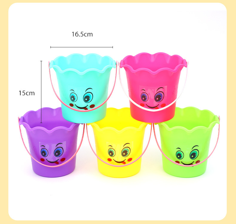어린이 해변 장난감 양동이 단일 두꺼운 레이스 웃는 양동이 아기 물고기 작은 양동이 플라스틱 양동이 재생