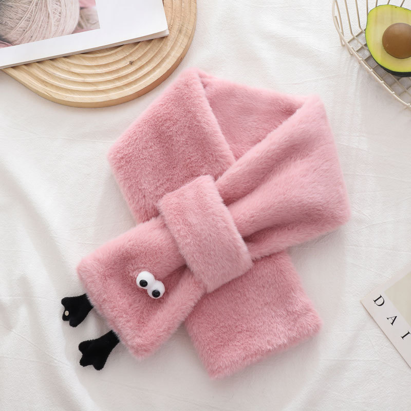흰색 귀여운 작은 스카프 여성의 겨울 한국 스타일 봉제 두꺼운 감기 방지 크로스 넥 모조 렉스 토끼 모피 짧은 스카프스토어 가기