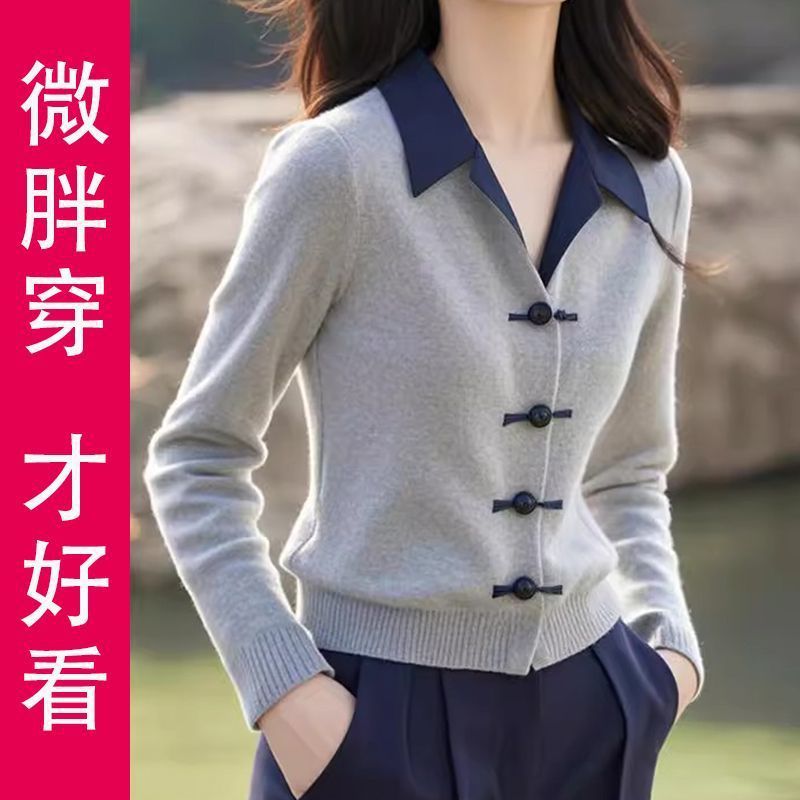 가을과 겨울 새로운 플러스 사이즈 우아한 살로 덮인 어깨 카디건 최고 통통녀 여성을위한 고급 중국 스타일의 버클 니트 스웨터스토어 가기