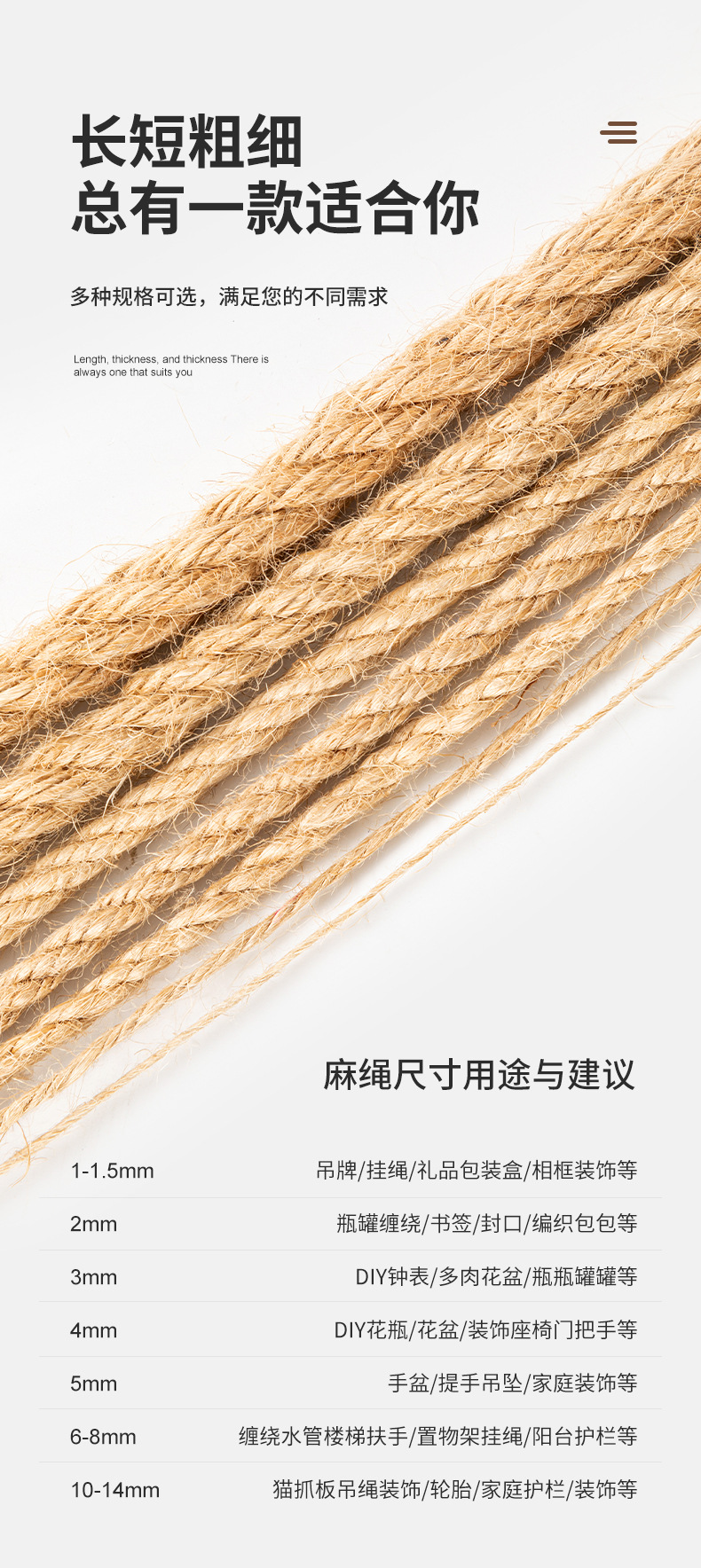 대마 로프 수제 로프 두껍고 얇은 대마 로프 크래프트 대마 로프 3 현 꼬인 Jute 로프 바인딩 로프 고양이 등반 랙 쥬트 로프스토어 가기