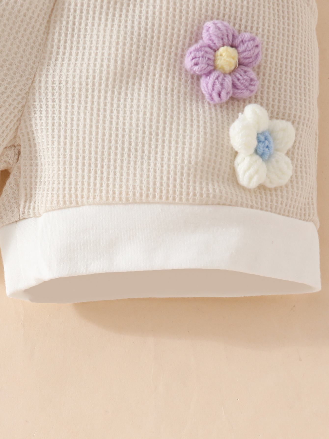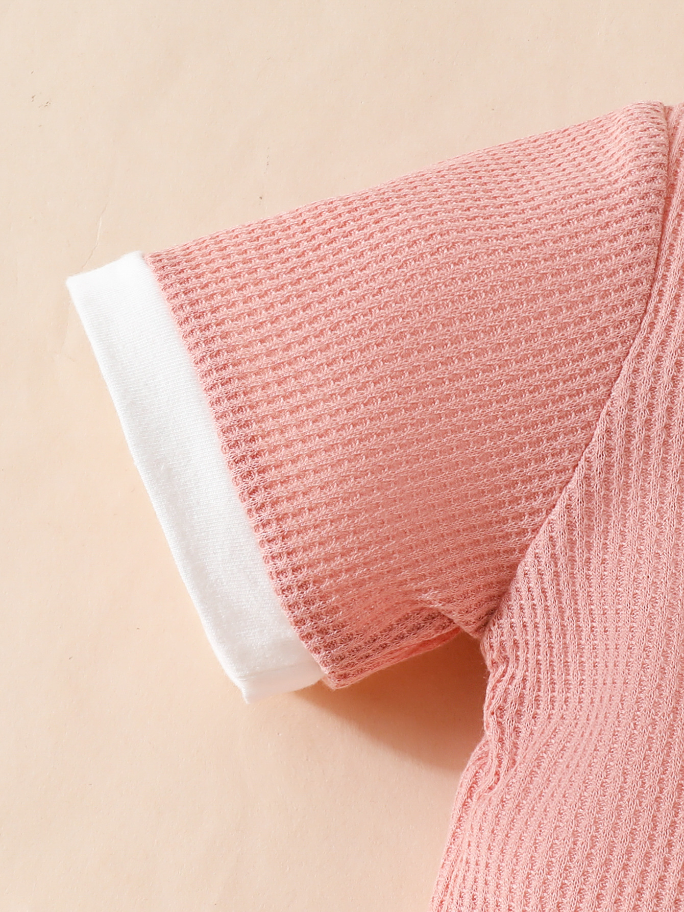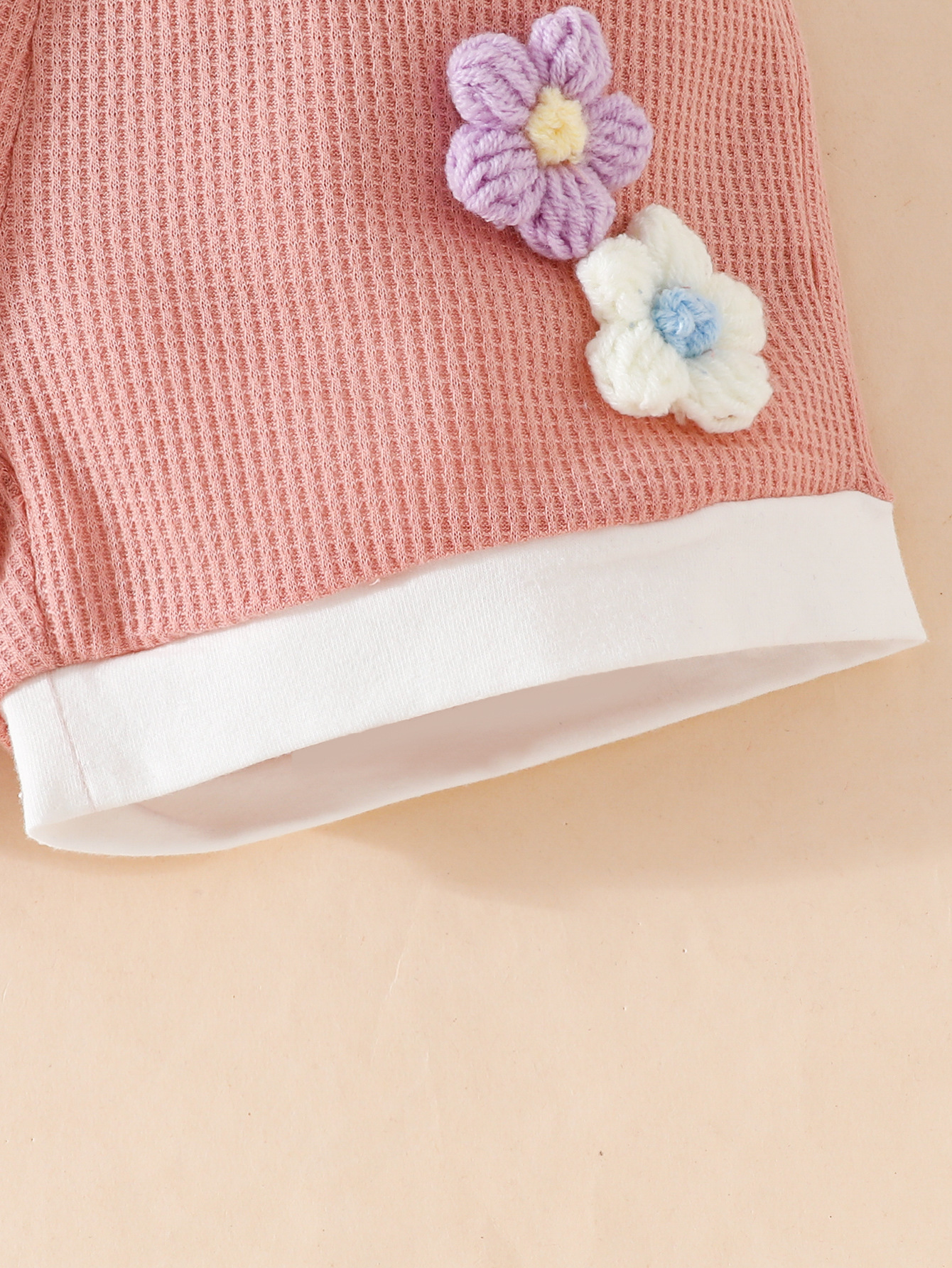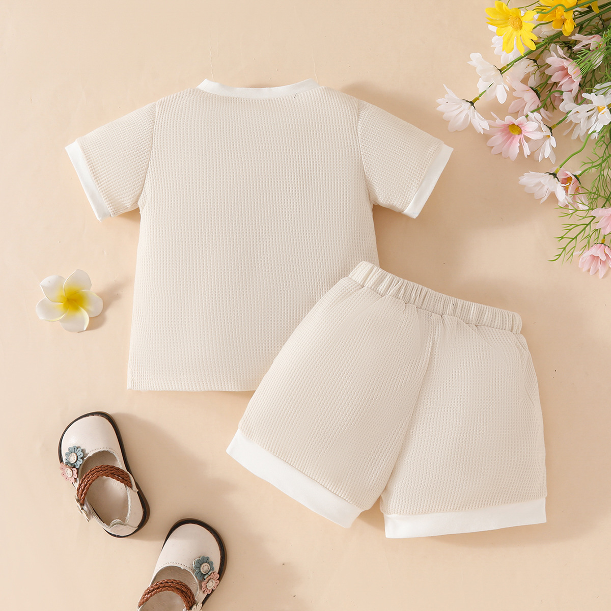 국경 간 대외 무역 아동복 어린이 여름 와플 둥근 목 색상 대비 짧은 소매 세트 3 차원 꽃 2 조각 세트스토어 가기