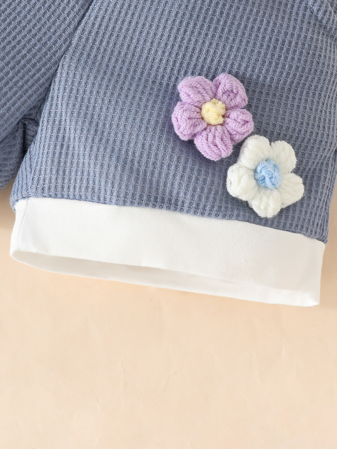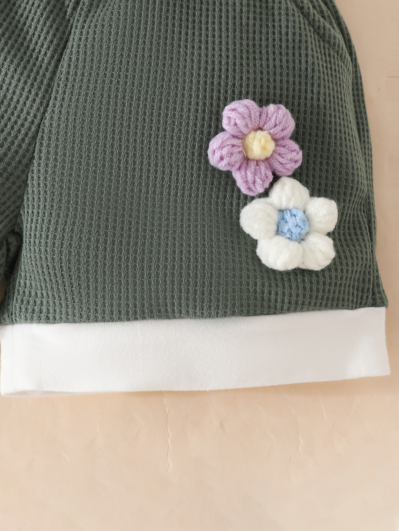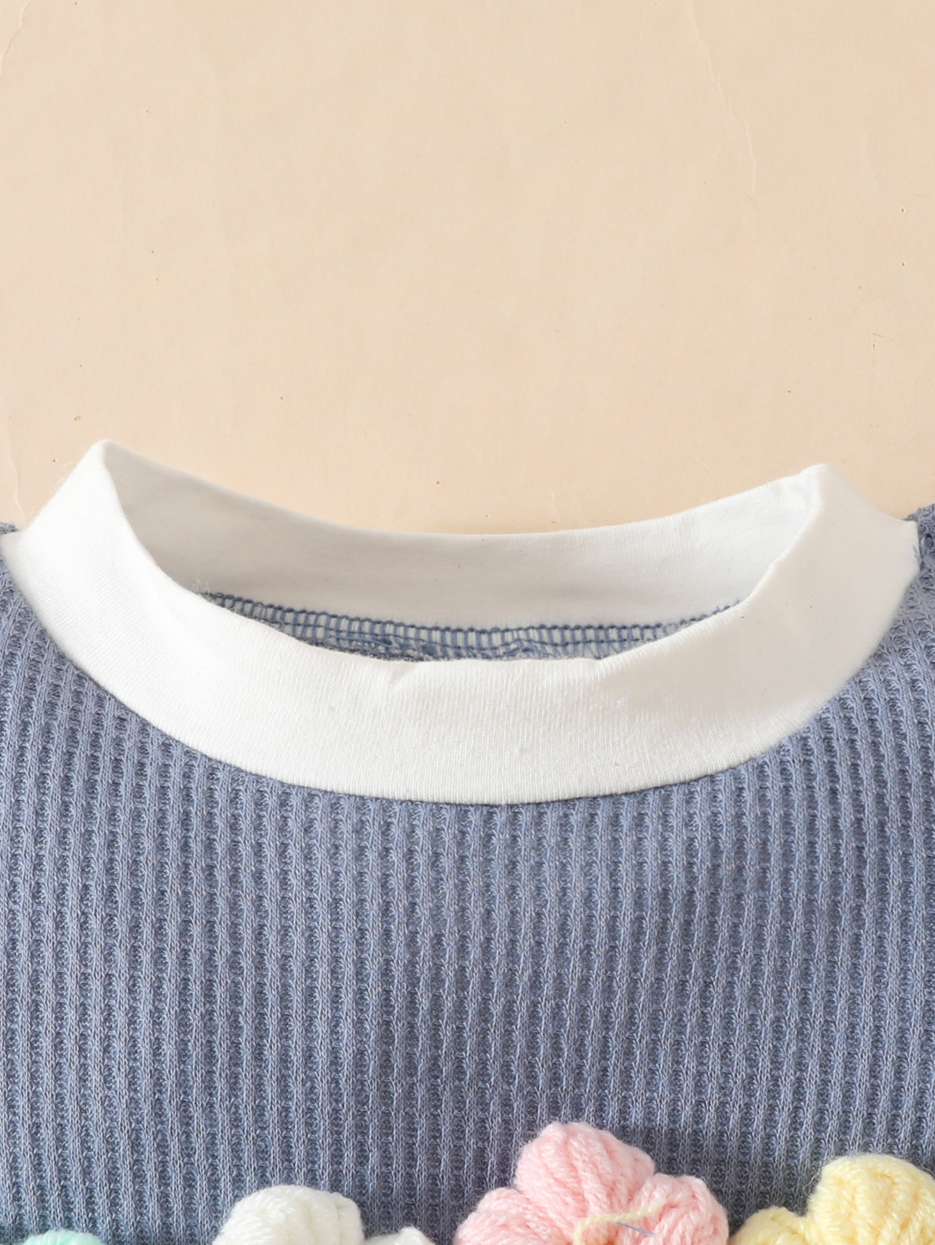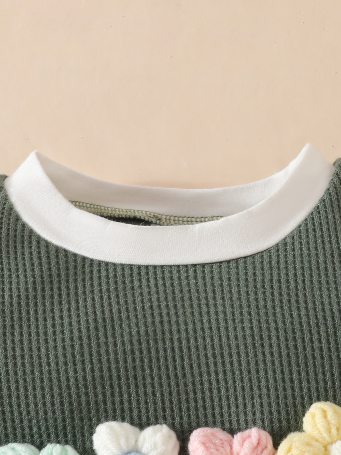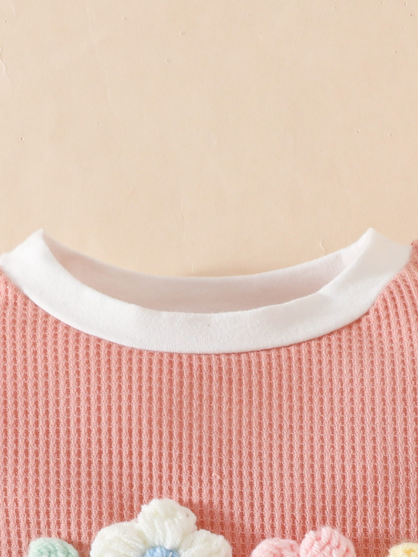 국경 간 대외 무역 아동복 어린이 여름 와플 둥근 목 색상 대비 짧은 소매 세트 3 차원 꽃 2 조각 세트스토어 가기