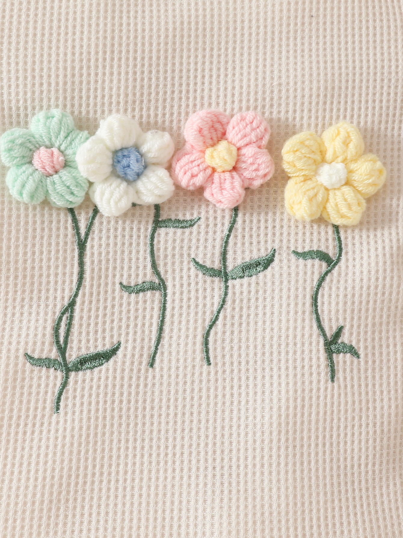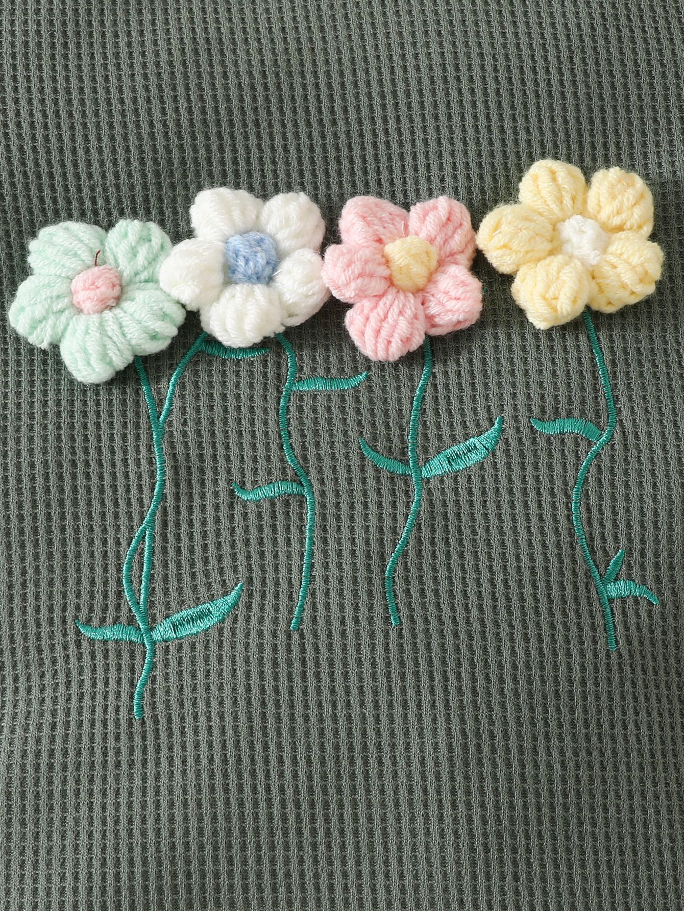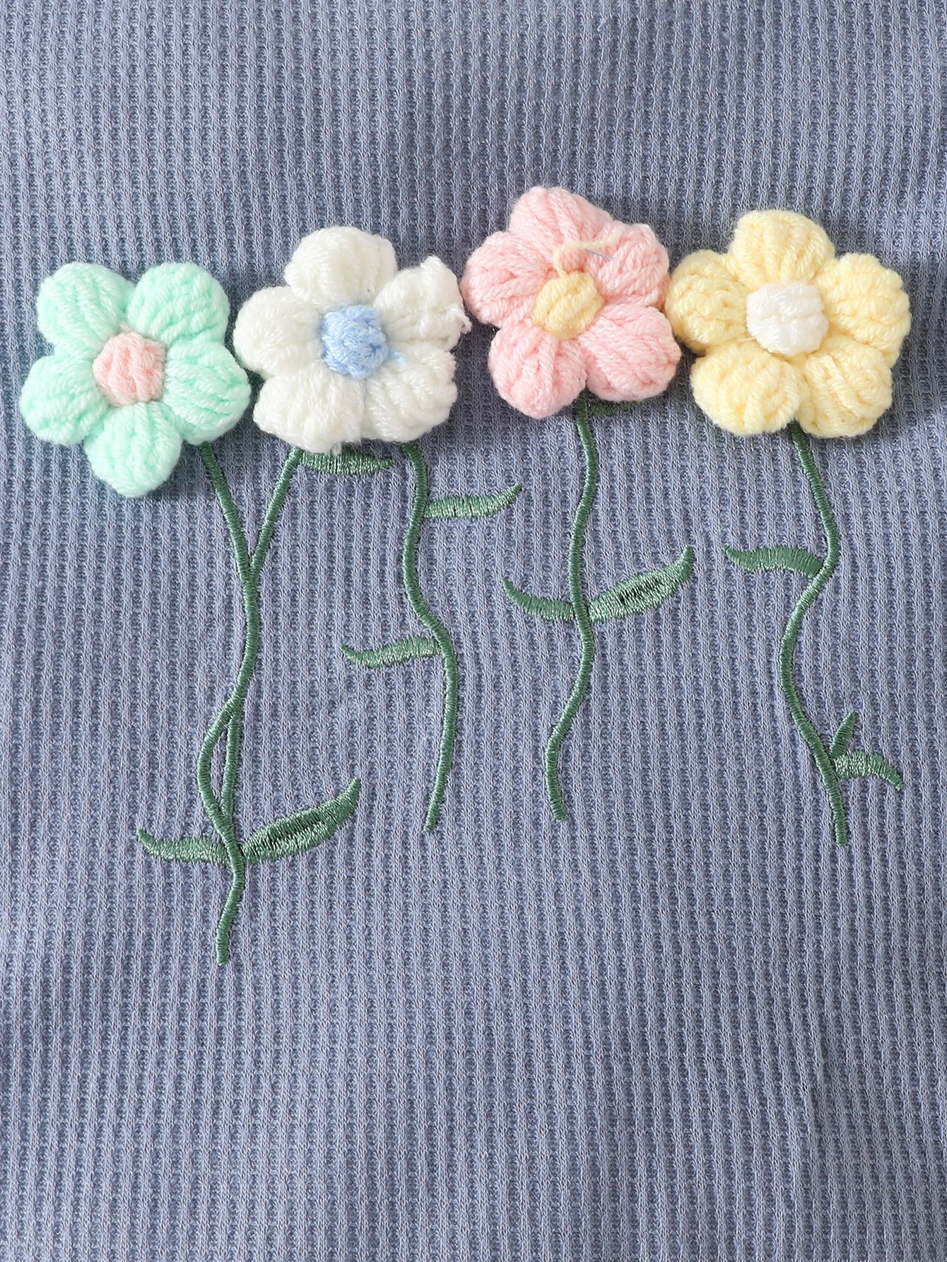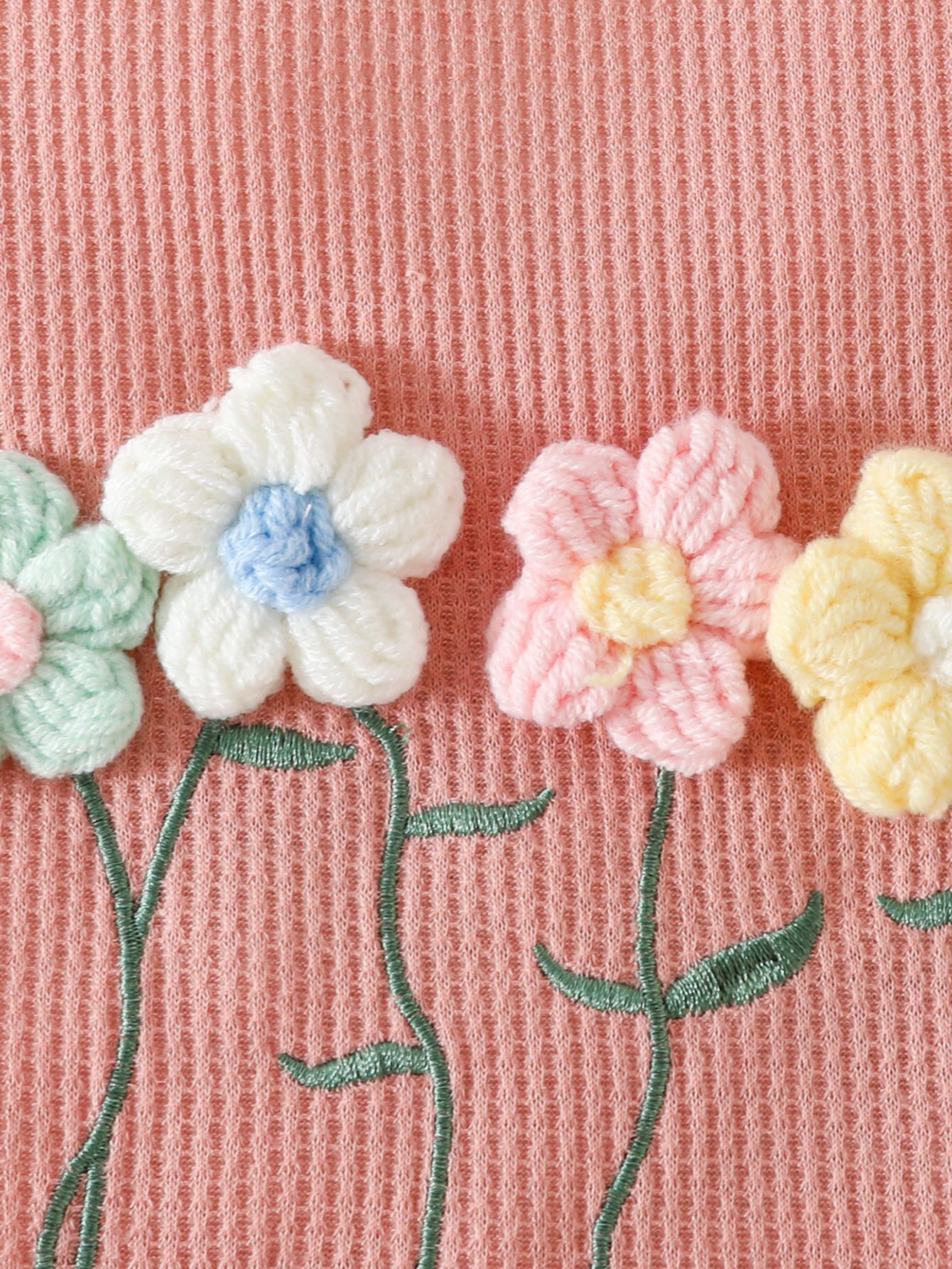 국경 간 대외 무역 아동복 어린이 여름 와플 둥근 목 색상 대비 짧은 소매 세트 3 차원 꽃 2 조각 세트스토어 가기