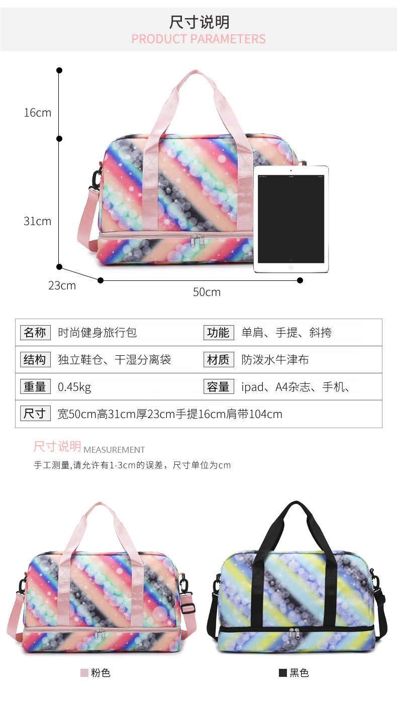 국경 2024 새로운 여행 가방 여성 대용량 스포츠 요가 가방 레저 여행 어깨 가방