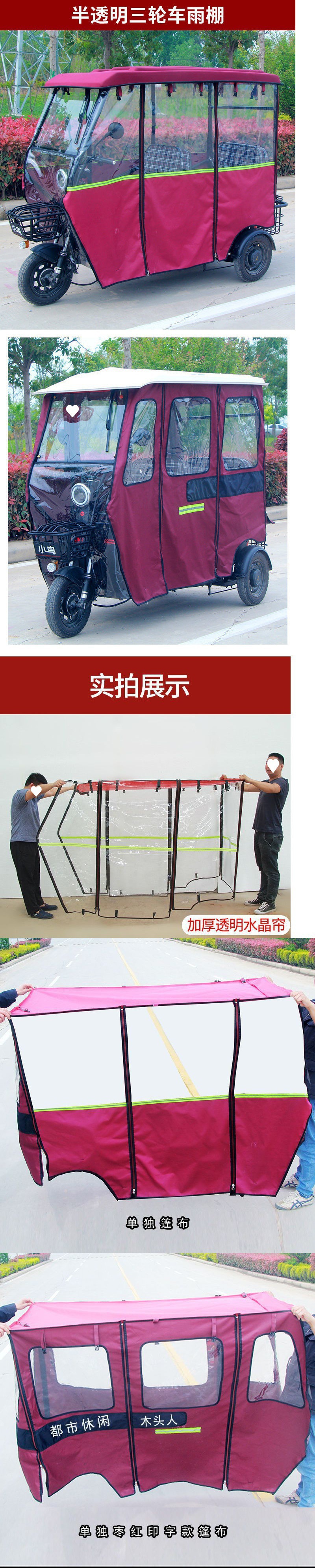 3 륜 전기 자동차 캐노피 공장 직접 소형 버스 전기 세발 자전거 새로운 두꺼운 폐쇄 투명 타포린 핫