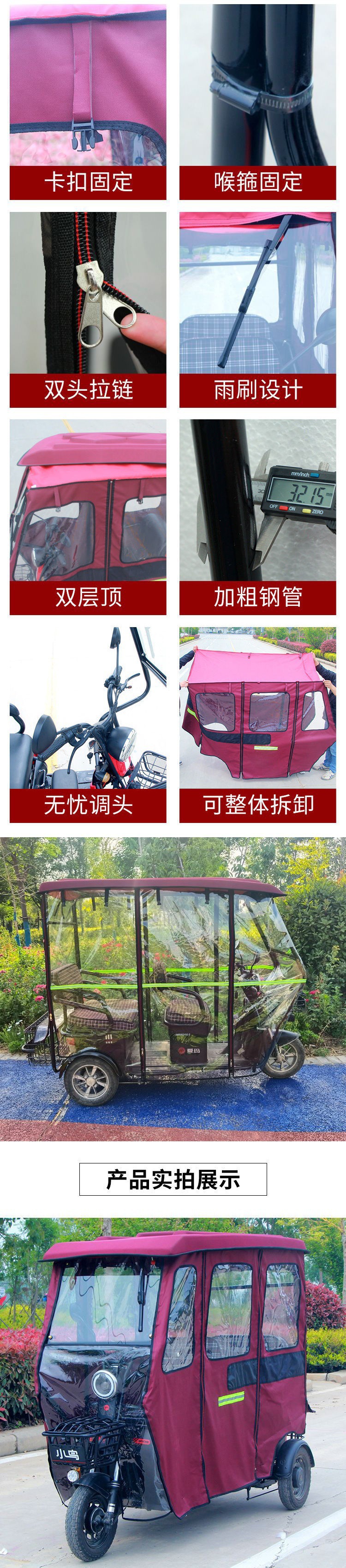 3 륜 전기 자동차 캐노피 공장 직접 소형 버스 전기 세발 자전거 새로운 두꺼운 폐쇄 투명 타포린 핫스토어 가기