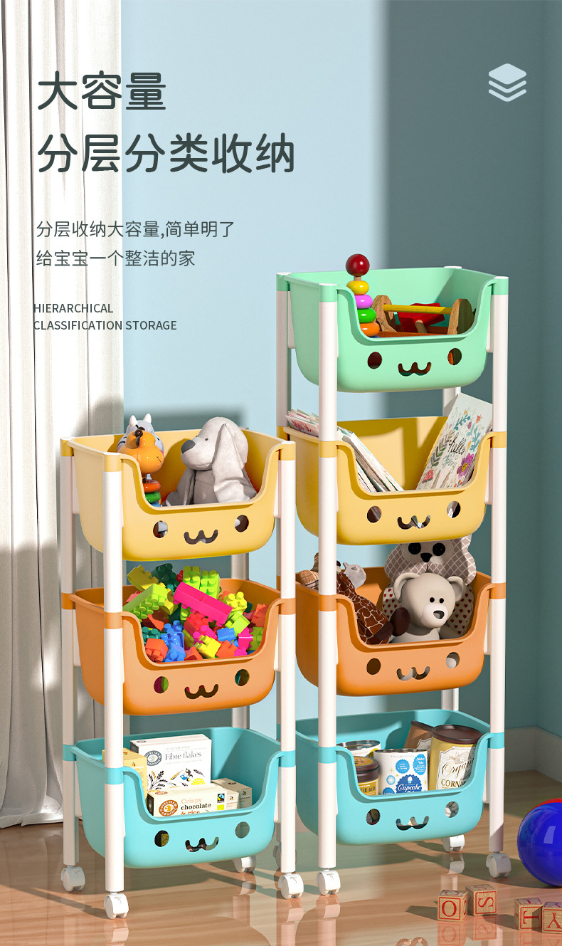 트롤리 랙 어린이 거실 바닥 서 아기 제품 가정용 침실 간식 접이식 장난감 보관 랙스토어 가기