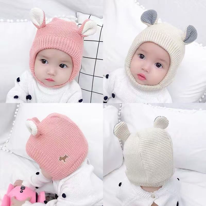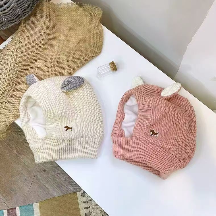 아기 모자 겨울 새로운 한국어 스타일 귀여운 강아지 두꺼운 따뜻한 니트 귀 보호 모자 소년과 소녀를위한스토어 가기