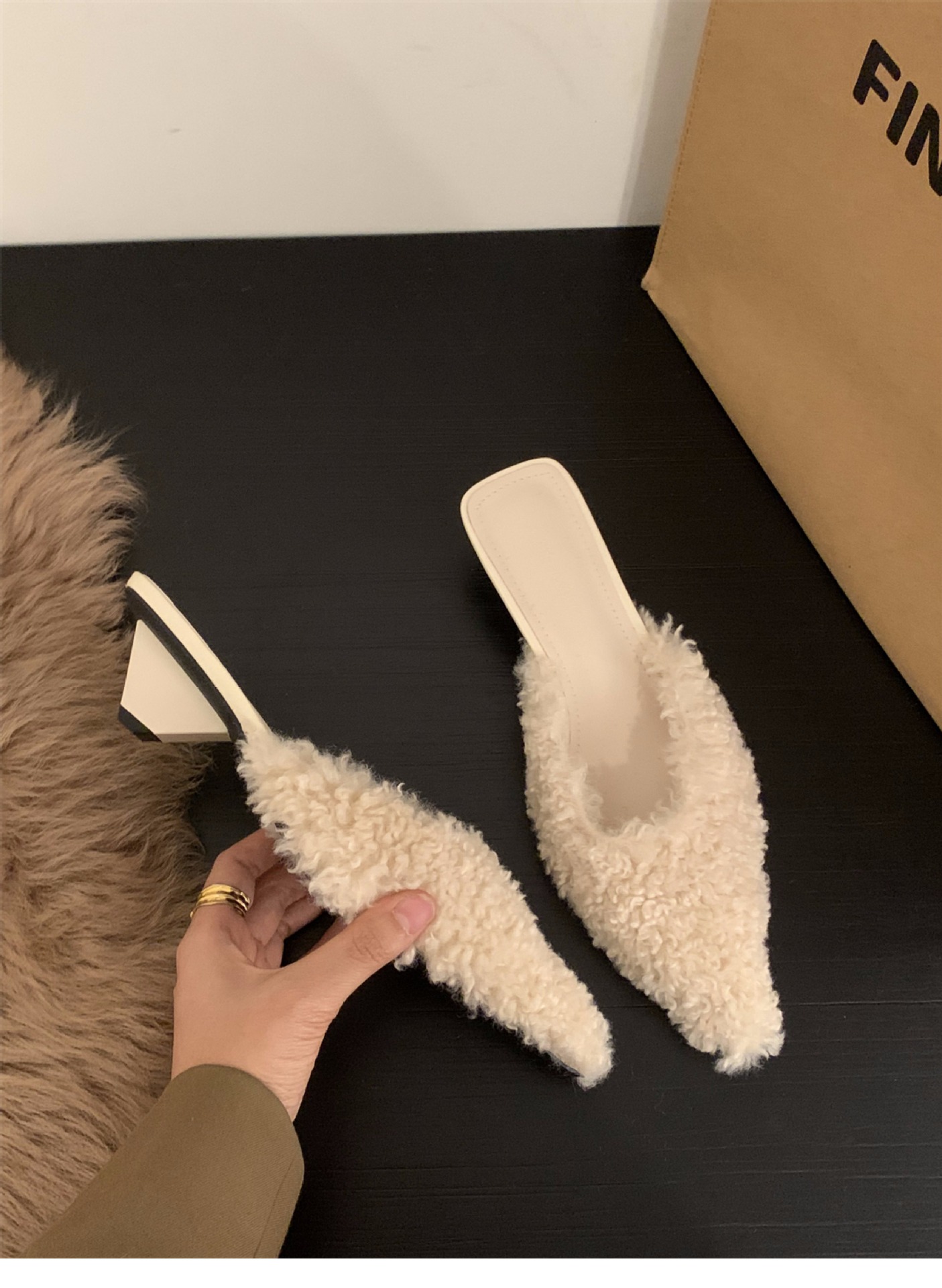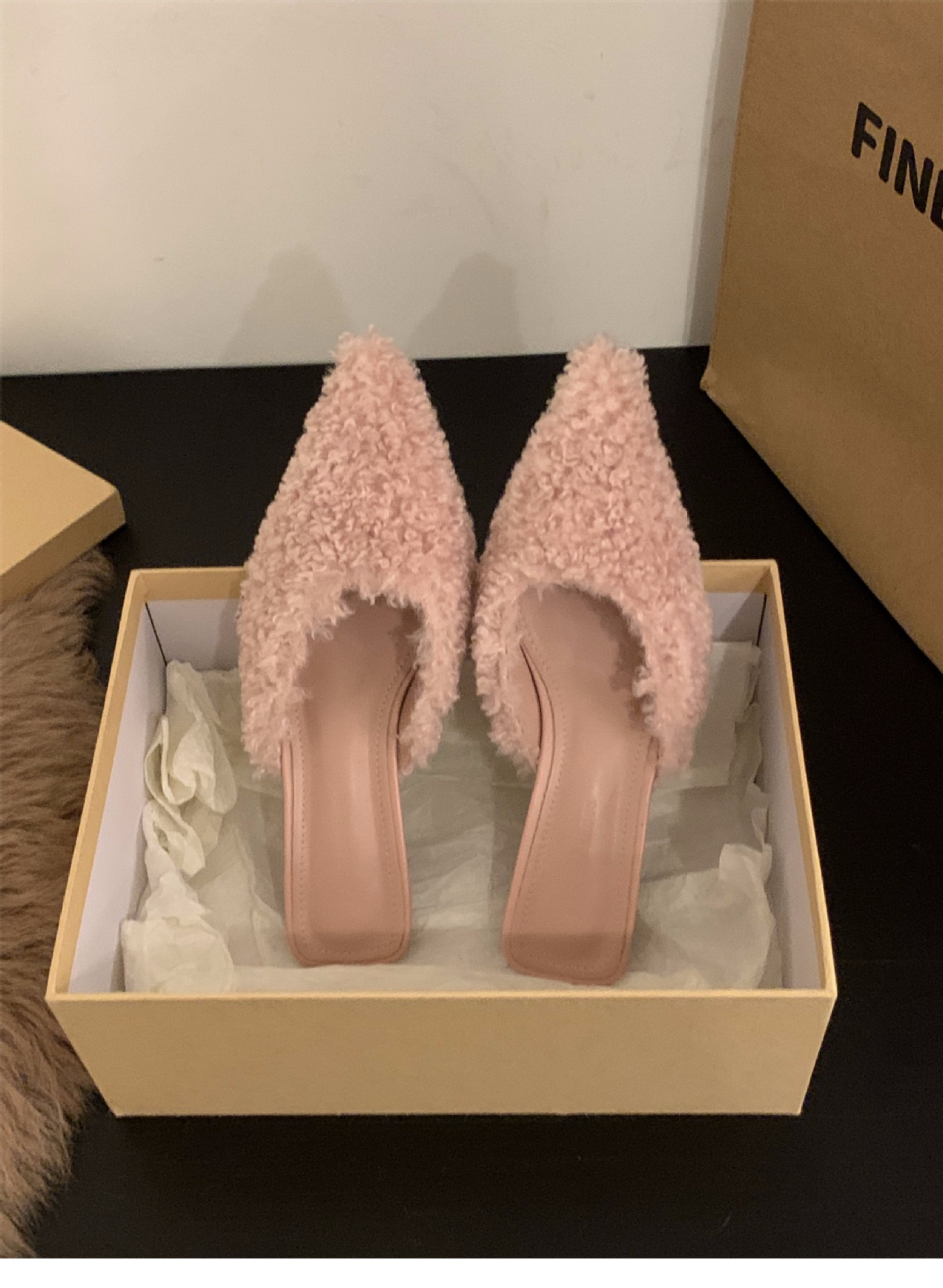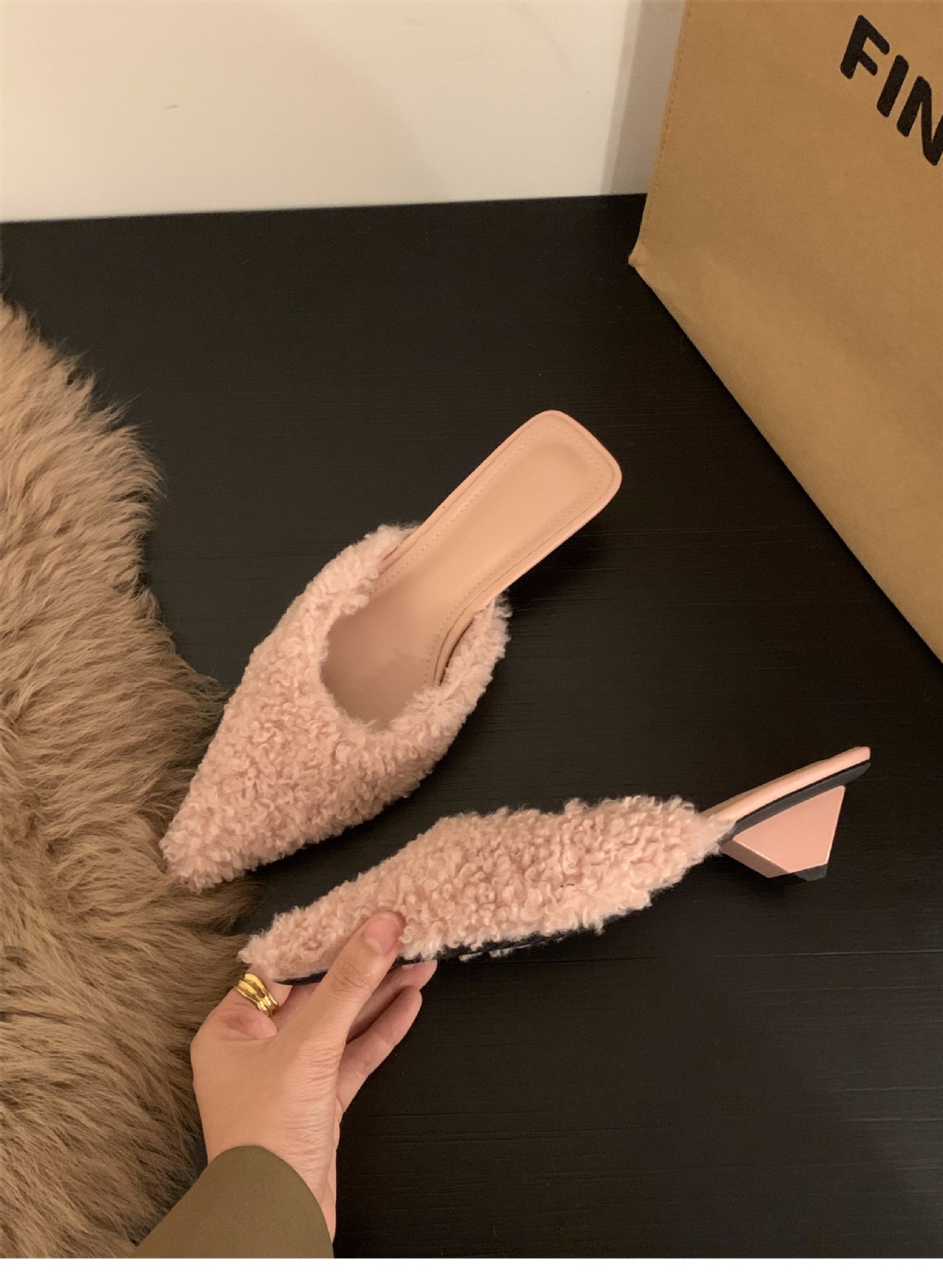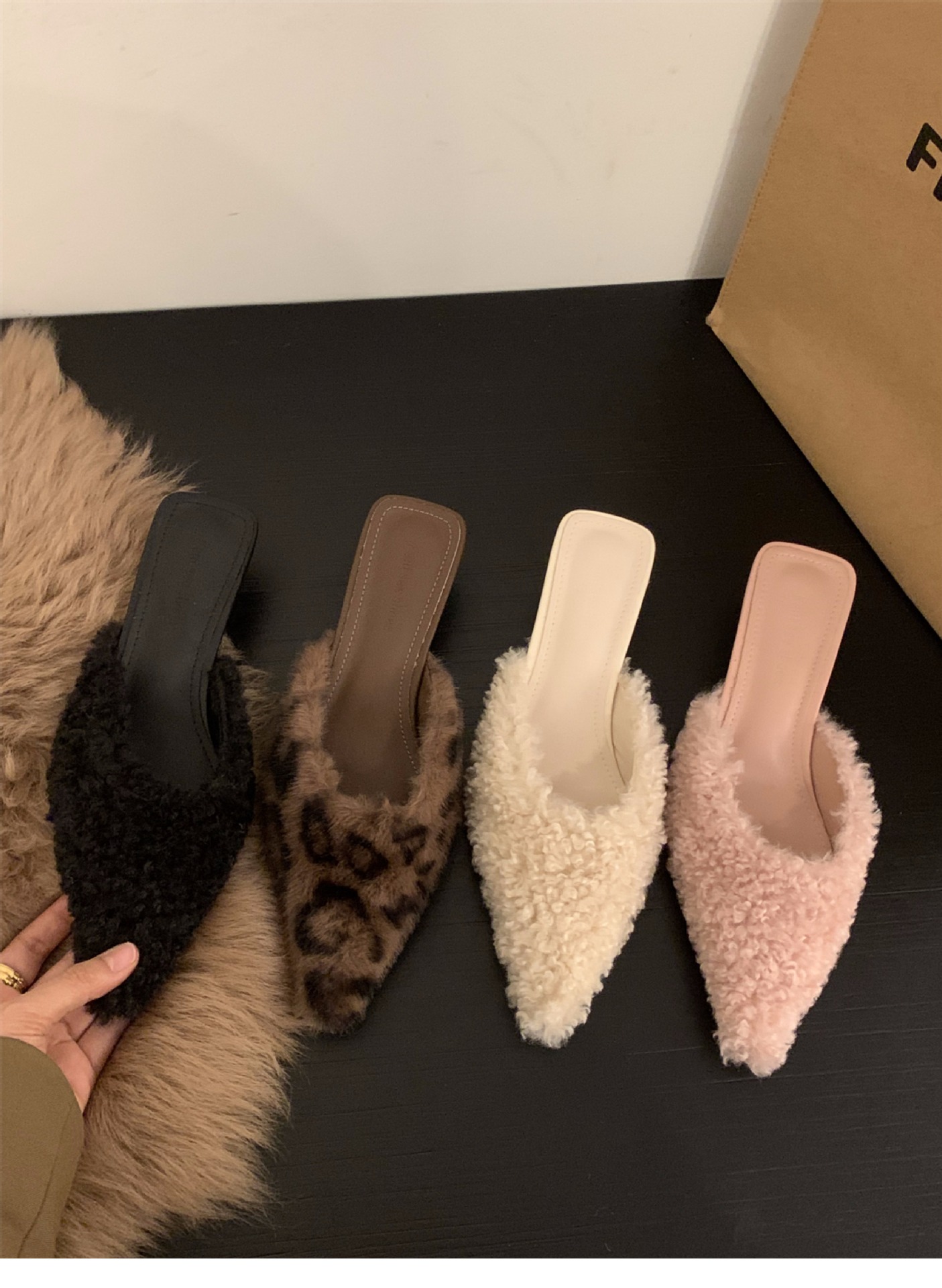 두꺼운 발 뒤꿈치 마오 마오 신발 커버 발가락 반 슬리퍼 여성 신발 겉옷 2024 새로운 가을과 겨울 기모 레오파드 무늬 반 신발스토어 가기