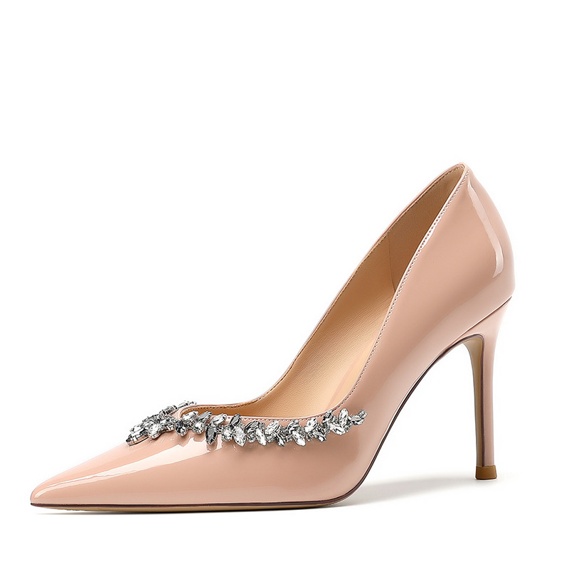 프랑스 뾰족한 하이힐 여성 2025 새로운 라인석 얇은 힐 디자인 틈새 섹시한 패션 피곤하지 않은 발 싱글 신발스토어 가기