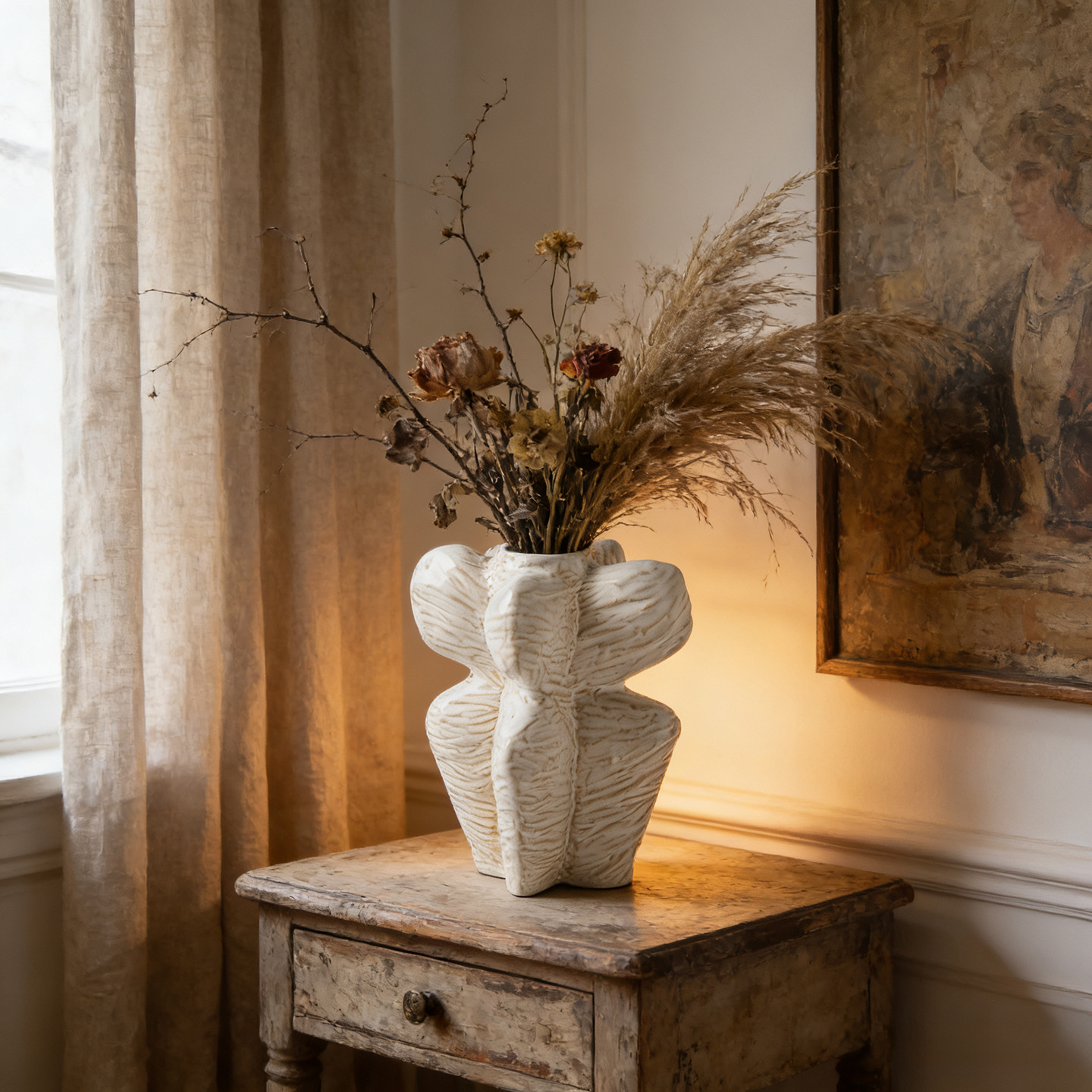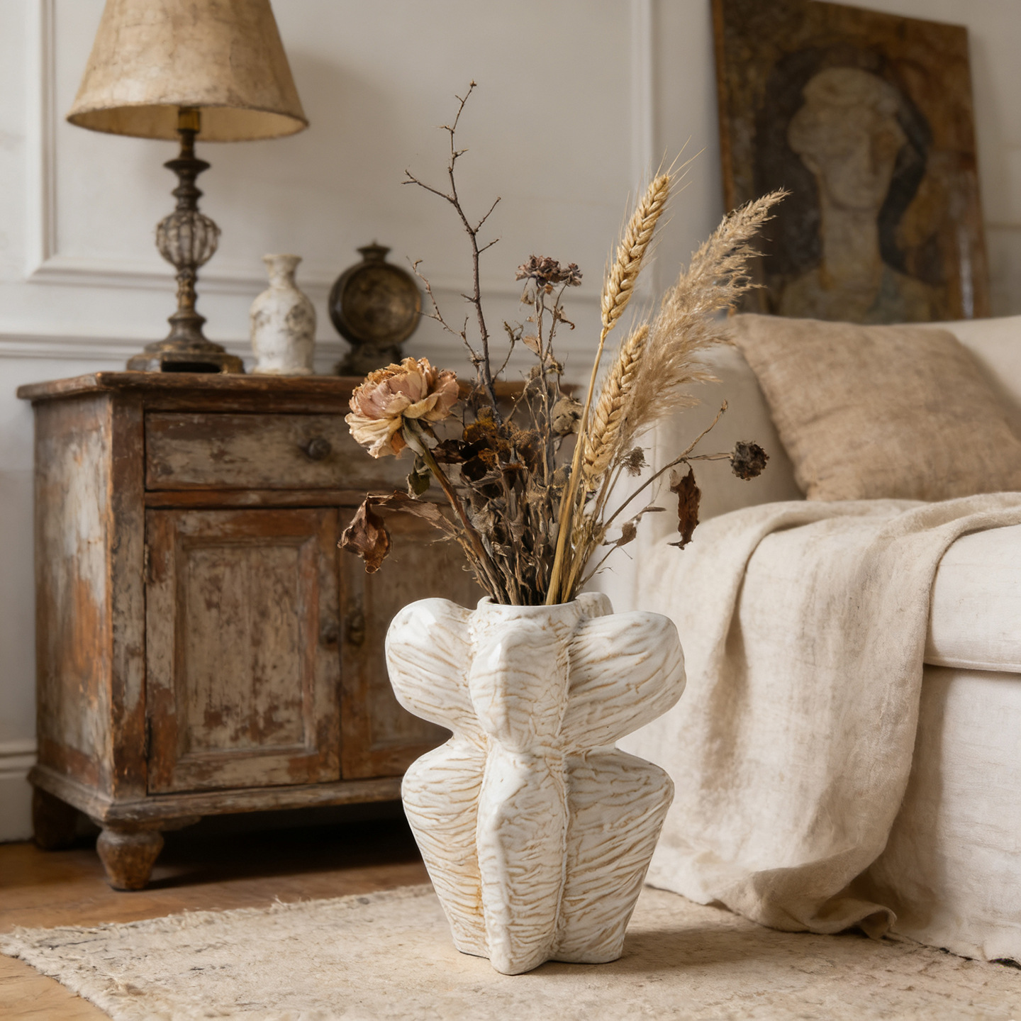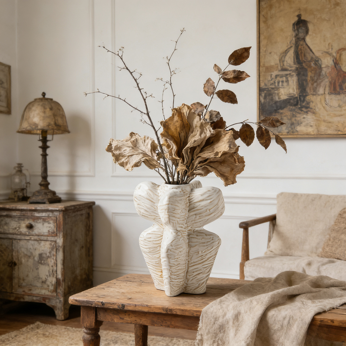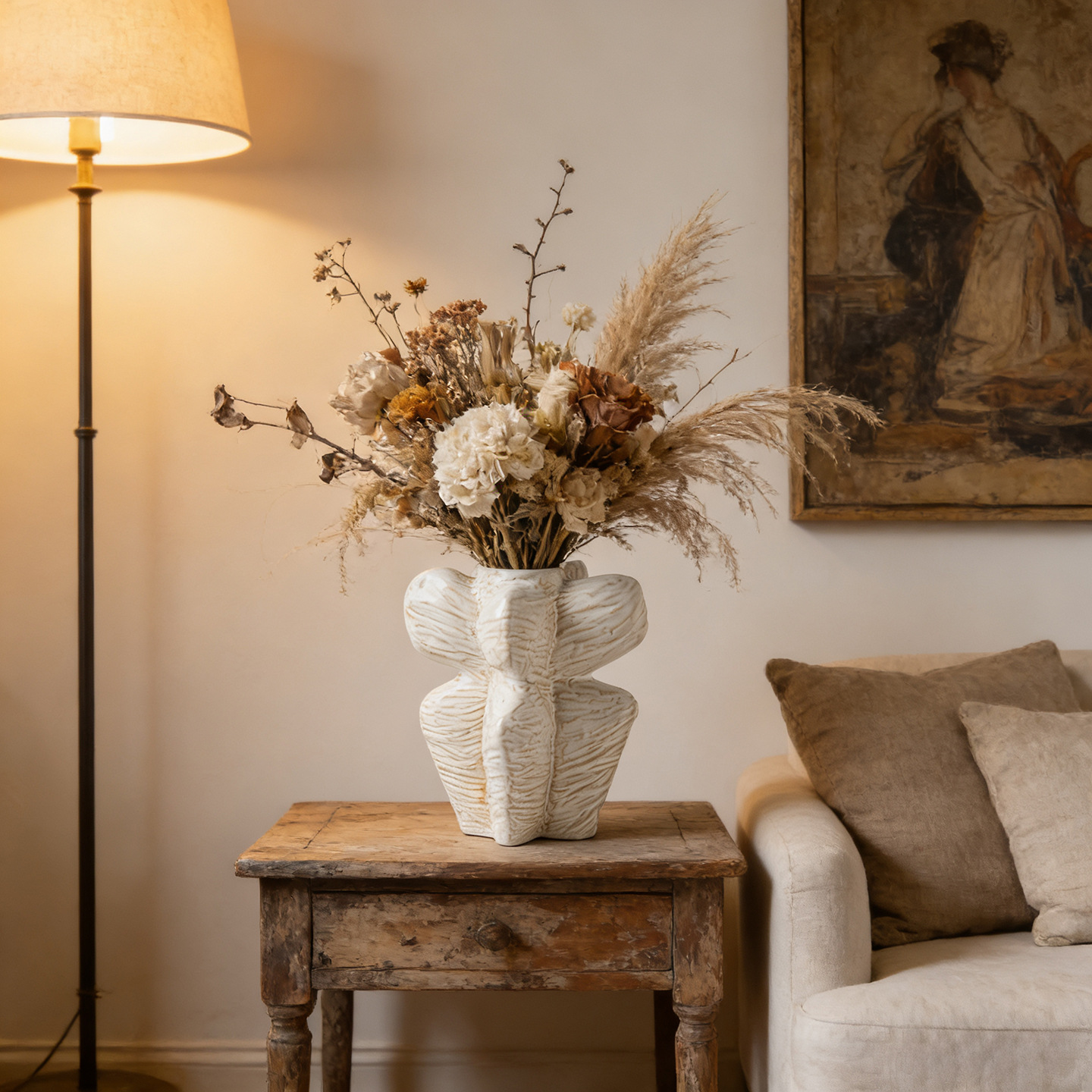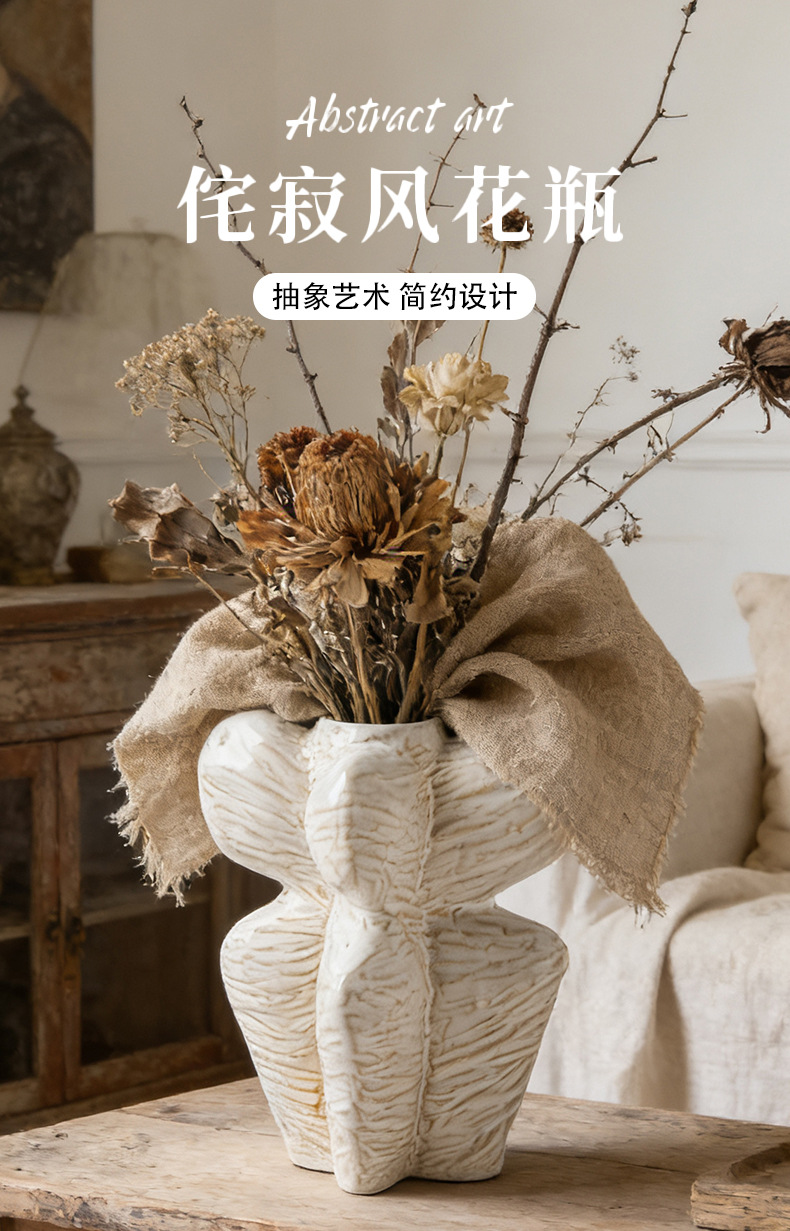 프랑스 스타일 화이트 세라믹 꽃병 라이트 럭셔리 하이 엔드 미들 아트 스타일 창조적 인 장식품 수경 꽃 배열 국경스토어 가기