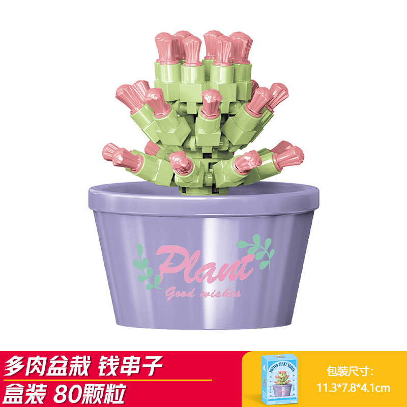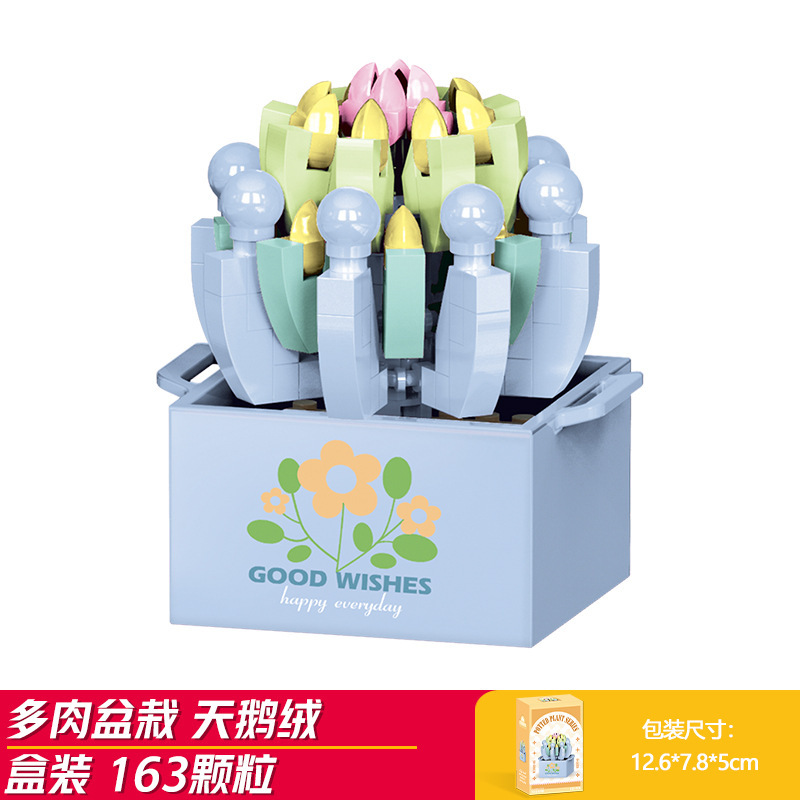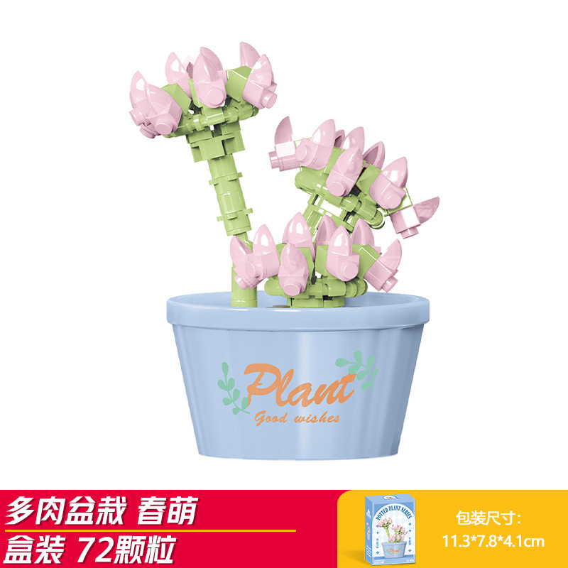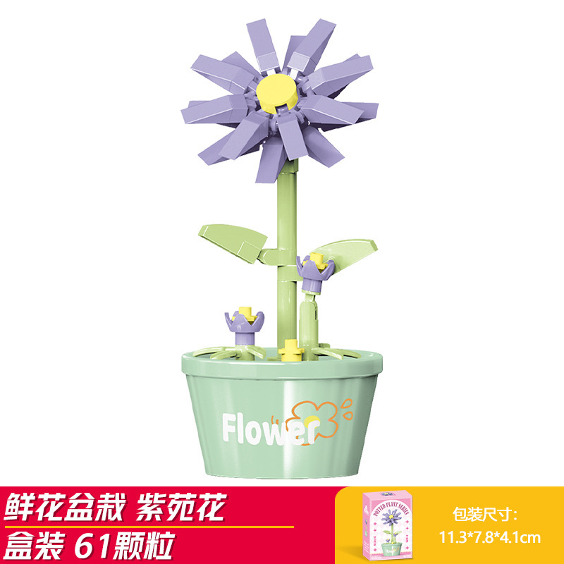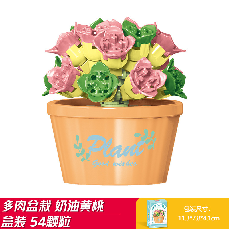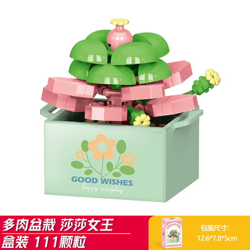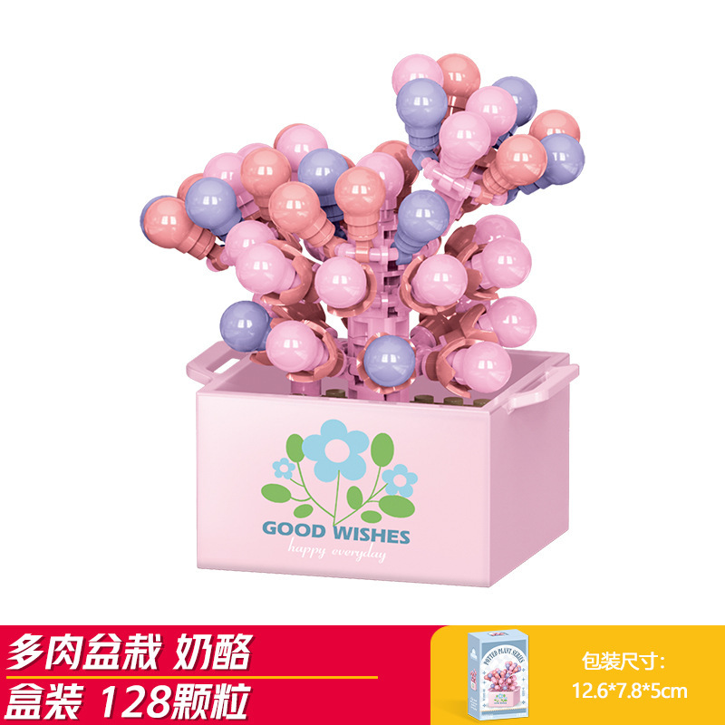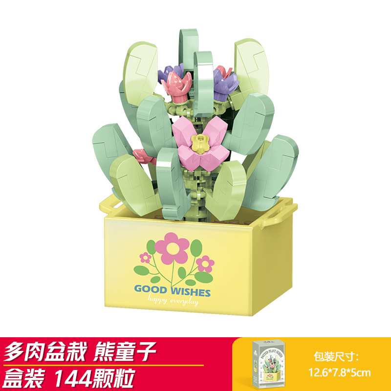 Lele Brothers 빌딩 블록 꽃 레고 어린이 교육 조립 된 다육 질 화분 장난감 소년 선물