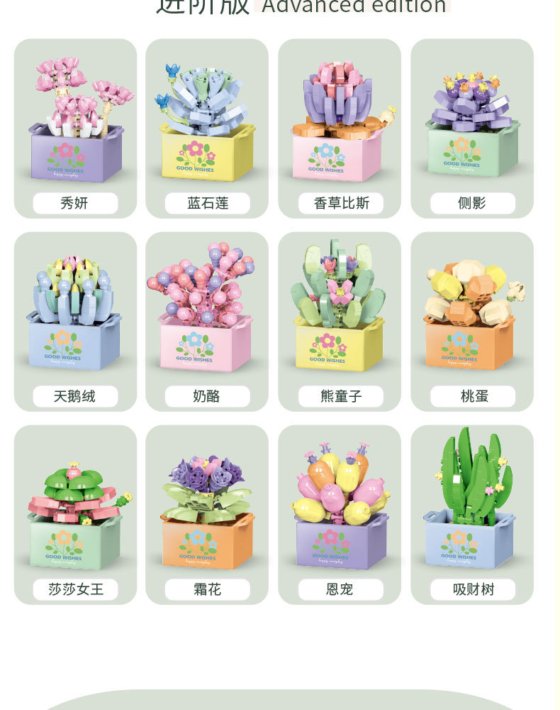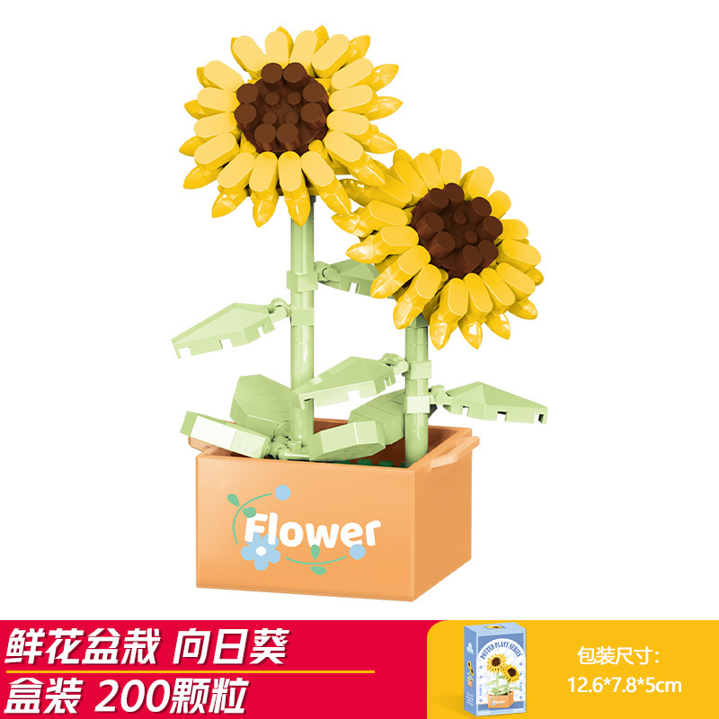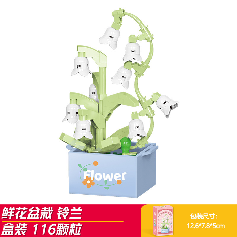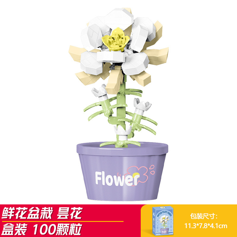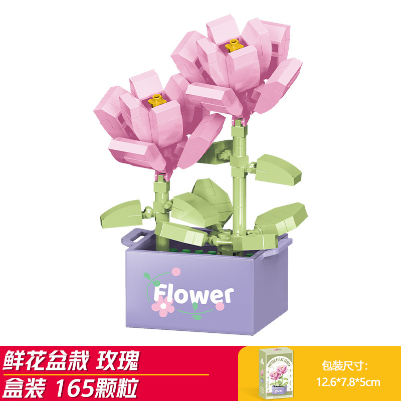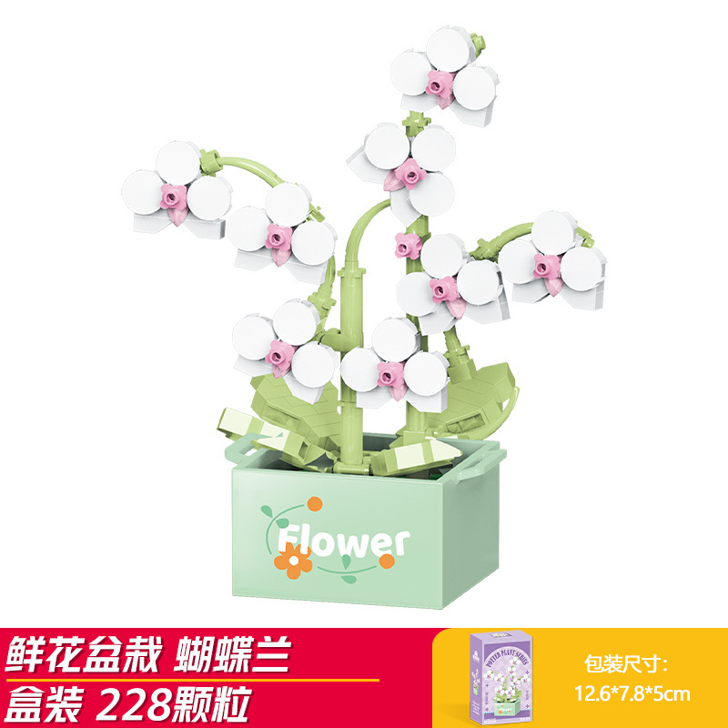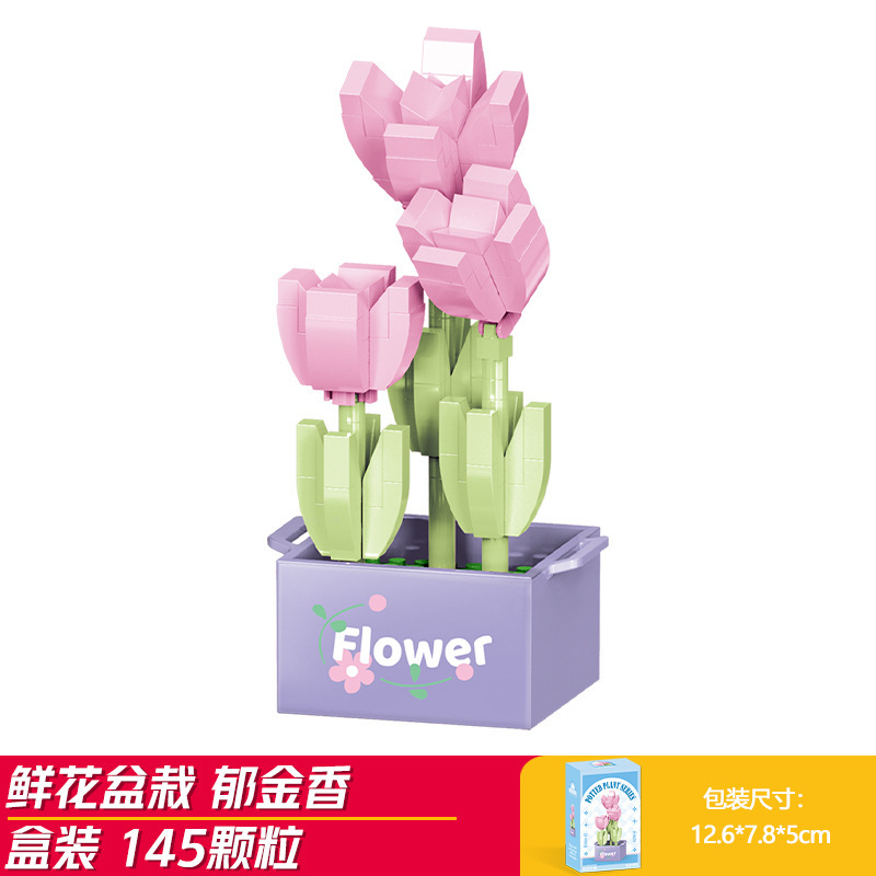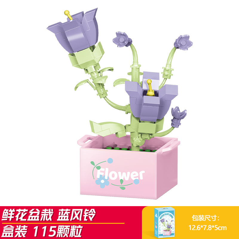 Lele Brothers 빌딩 블록 꽃 레고 어린이 교육 조립 된 다육 질 화분 장난감 소년 선물