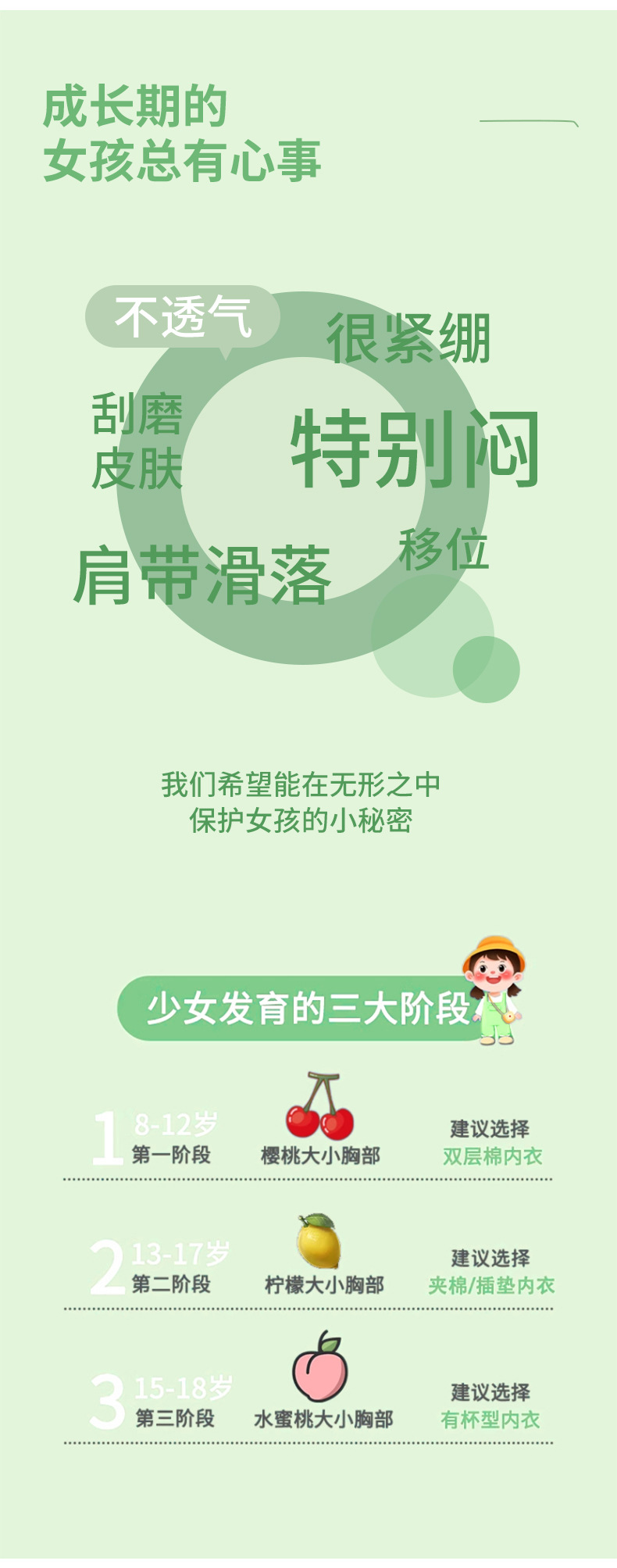 발달 단계에서 소녀들을위한 가볍고 얇은 통기성 자카드 면화 속옷 초등학생 속옷 큰 아이들의 소녀들과 소녀들을위한 작은 조끼