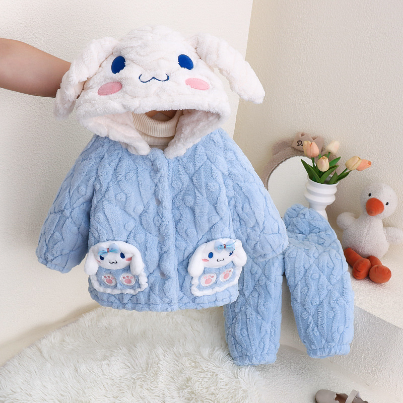 소녀 잠옷 겨울 3 층 면화 기모 두꺼운 겨울 아기 어린이 소녀 2024 홈 옷 세트