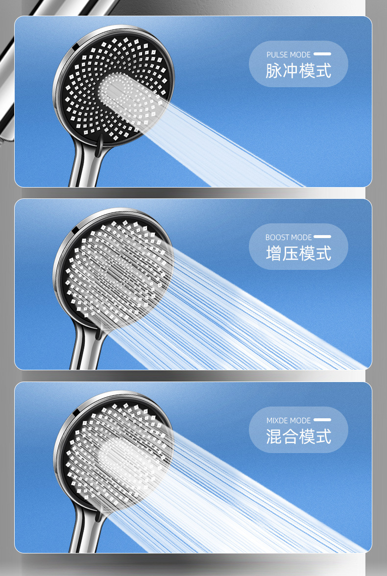 • 사각 3단 수전 + 5단 리프트 샤워 세트