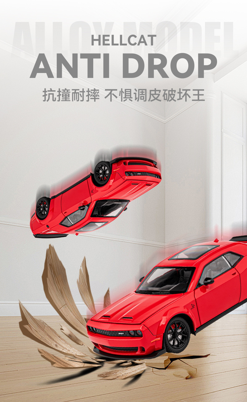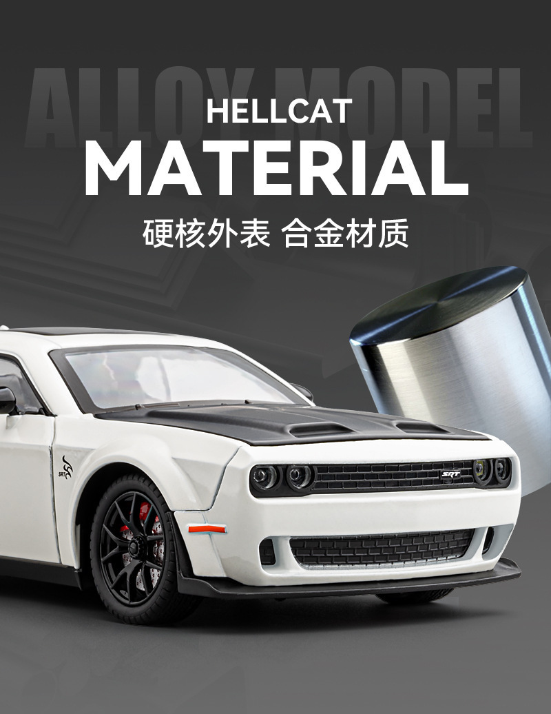 합금 자동차 모형 1:24 헬캣 챌린저 스포츠카 모형 시뮬레이션 사운드 및 라이트 후진 기능 도어 개폐 가능 시뮬레이션 모형 자동차스토어 가기