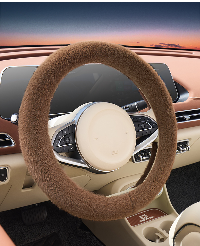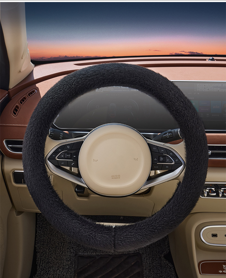 아마존 자동차 밍크 벨벳 스티어링 휠 커버, 패셔너블하고 귀여운 겨울용 따뜻하고 미끄럼 방지 핸들 커버, 방한, 해외 배송