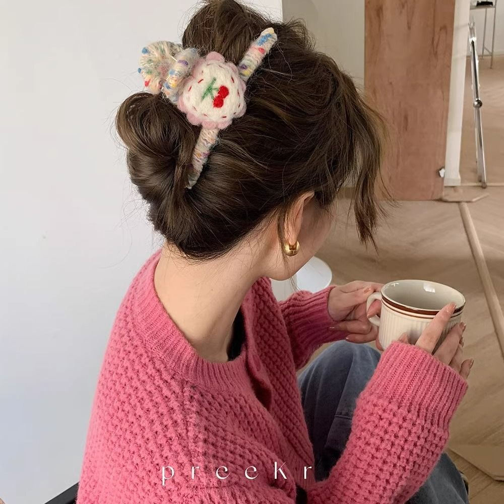 귀여운 체리 봉제 그릴 클립 대형 상어 클립 손으로 만든 머리핀 간단한 2023 가을과 겨울 새로운 헤어 액세서리