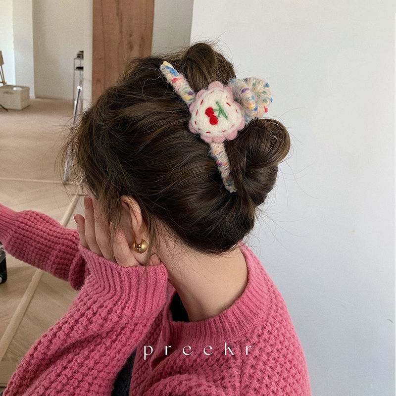 귀여운 체리 봉제 그릴 클립 대형 상어 클립 손으로 만든 머리핀 간단한 2023 가을과 겨울 새로운 헤어 액세서리스토어 가기