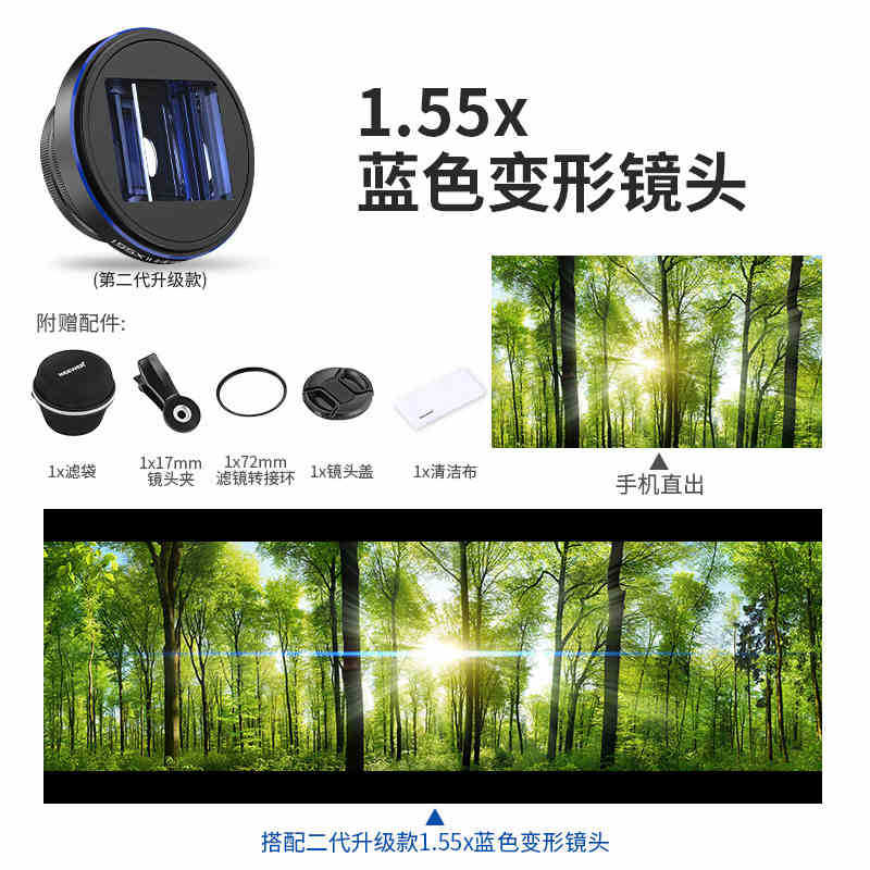 • 1.55x 블루 어니스트 렌즈(72mm 필터와 호환)(와이드 포맷 영화 느낌)