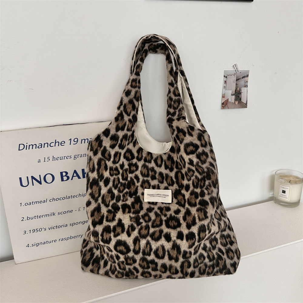 410272 새로운 도착 한국 어깨 핸드백 2024 양모 레오파드 무늬 대용량 Schoorgirls 선박 가방스토어 가기