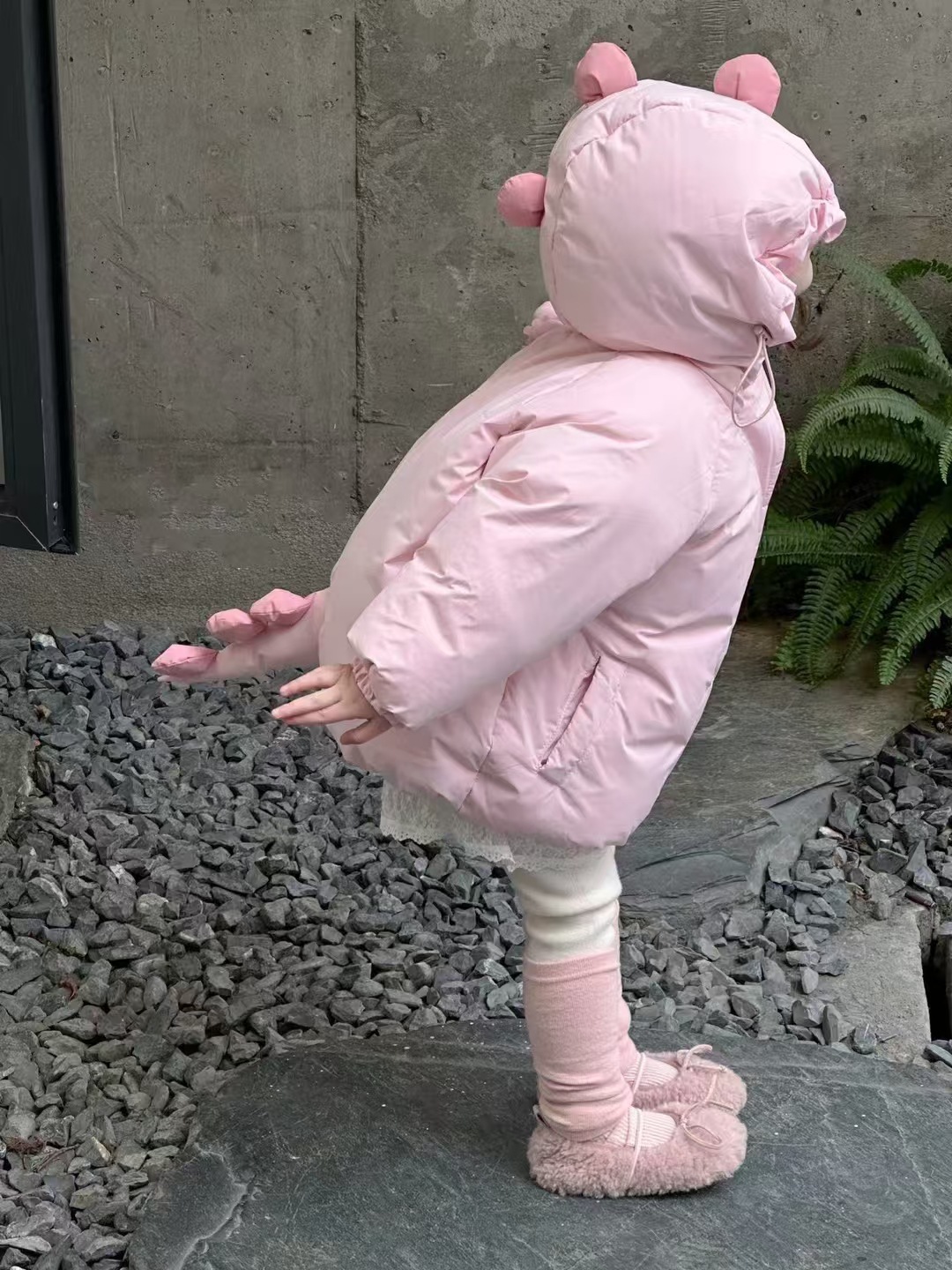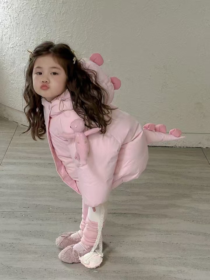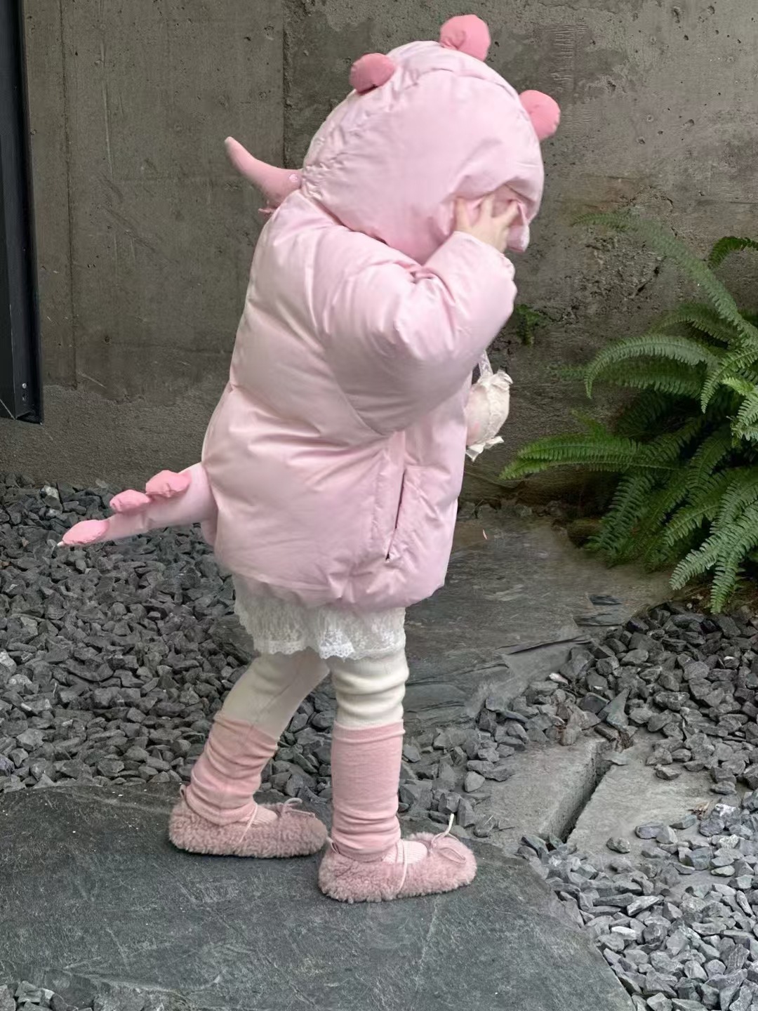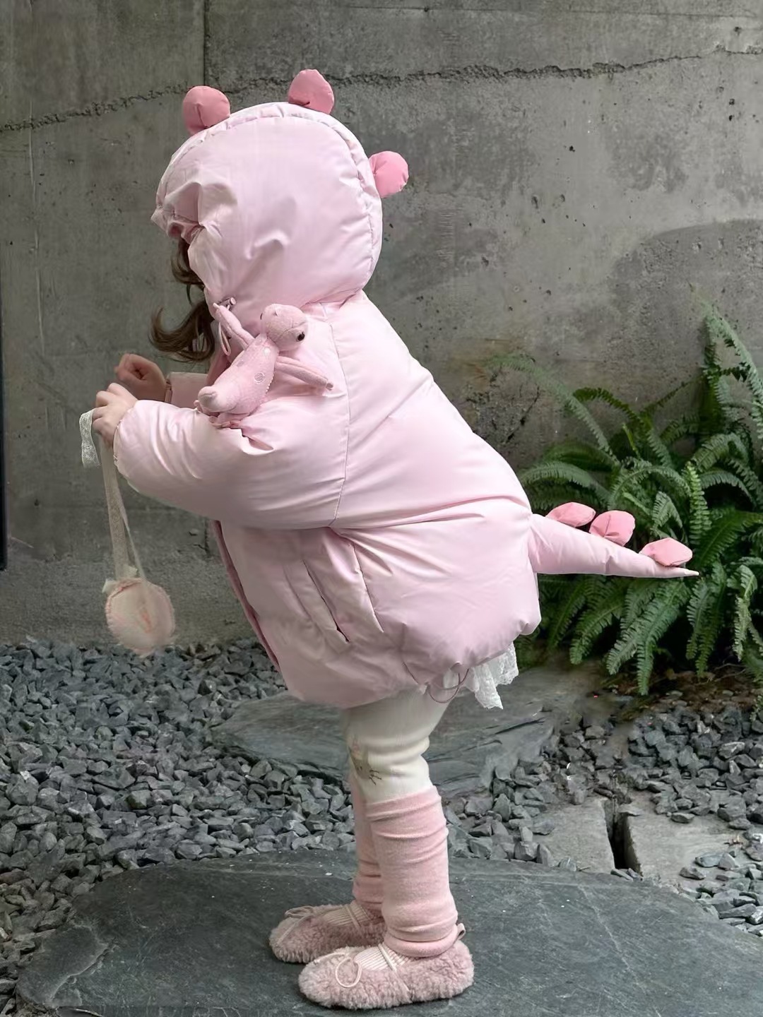 • 핑크 어깨 만화 공룡 모양의 다운 재킷
