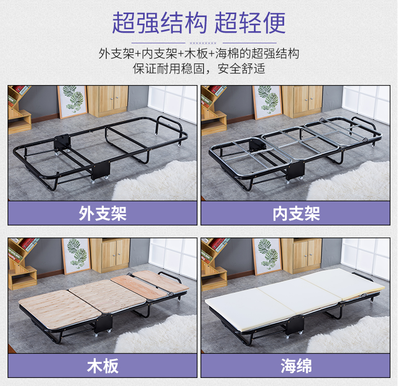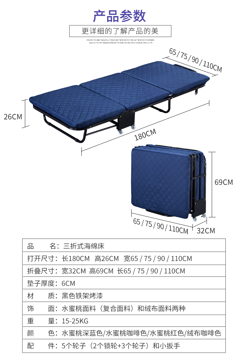 3 배 접이식 침대 싱글 낮잠 사무실 낮잠 침대 동반 침대 가정용 강화 보드 스폰지 소파 이중 사용스토어 가기