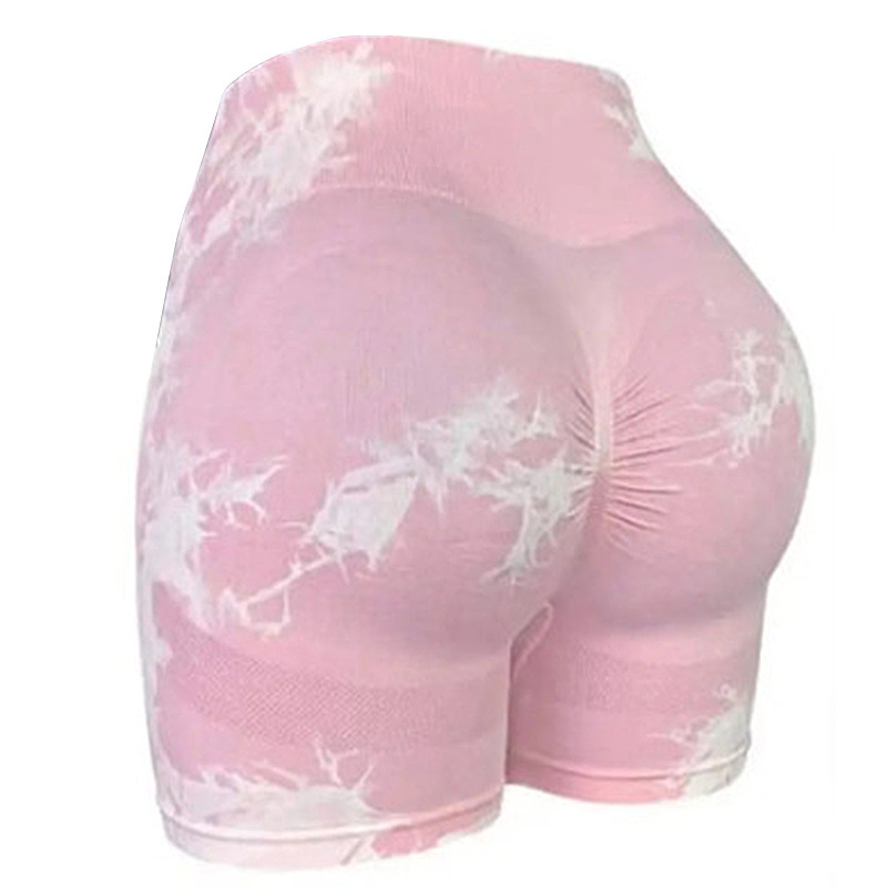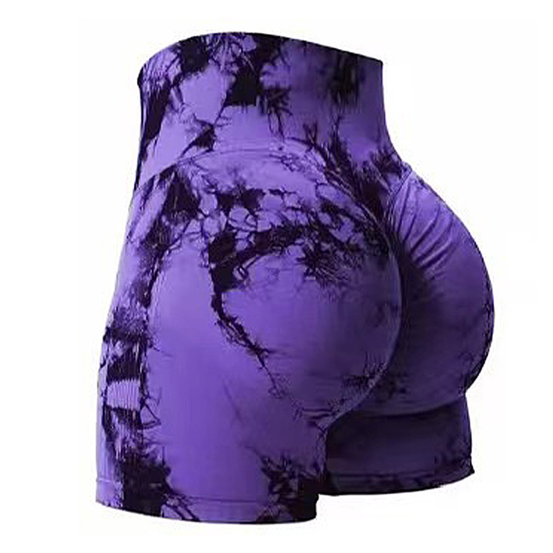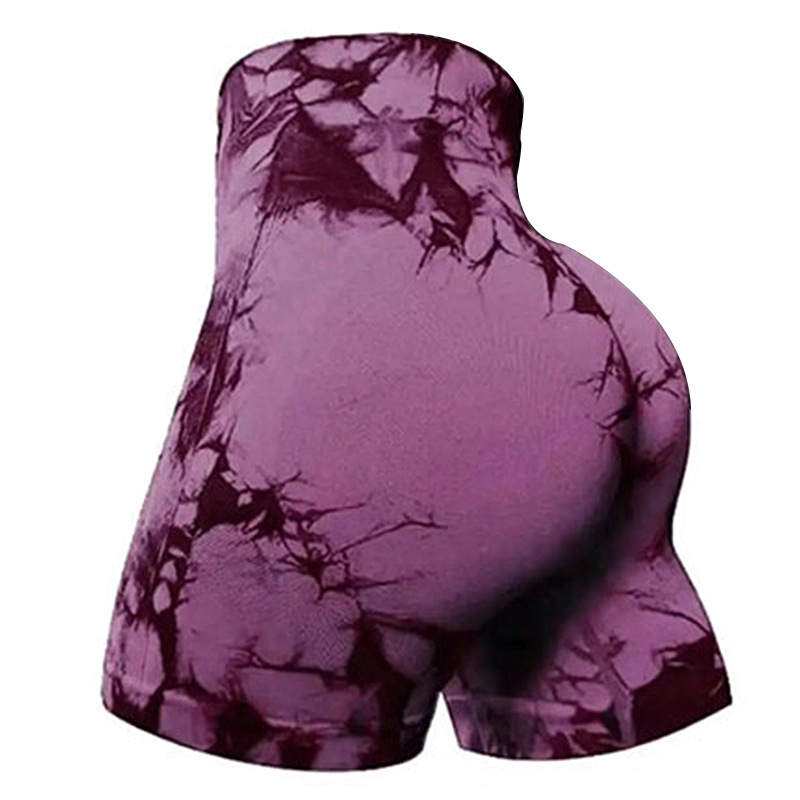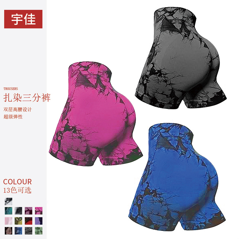 유럽과 미국의 하이 웨이스트 엉덩이 리프팅 타이 염색 요가 반바지 여름 3 점 바지 러닝 피트니스 꽉 끼는 속건성 스포츠 반바지 여성용