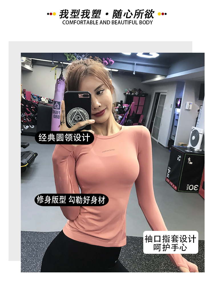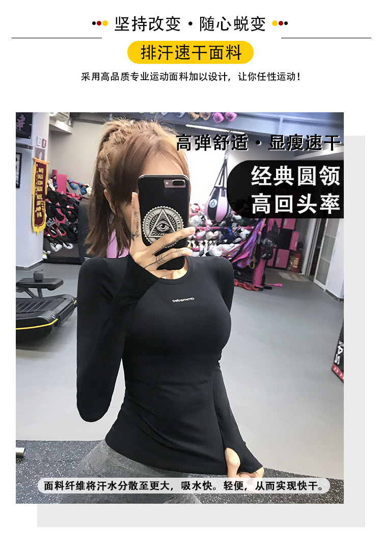 인터넷 유명 러닝 스포츠 탑 빠른 건조 통기성 피트니스 의류 탄성 타이트 요가 의류 슬리밍 긴팔 티셔츠 가을스토어 가기