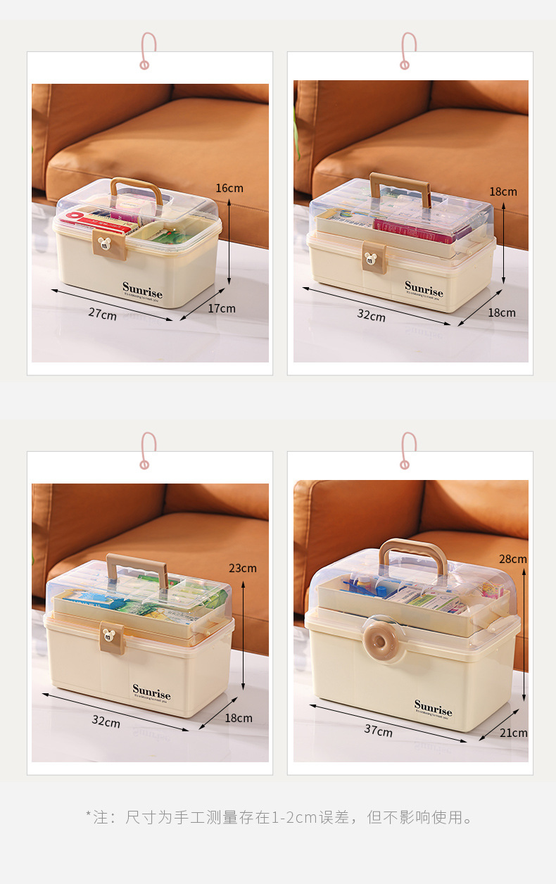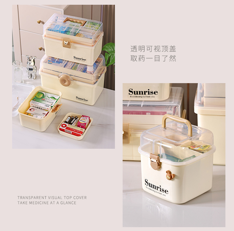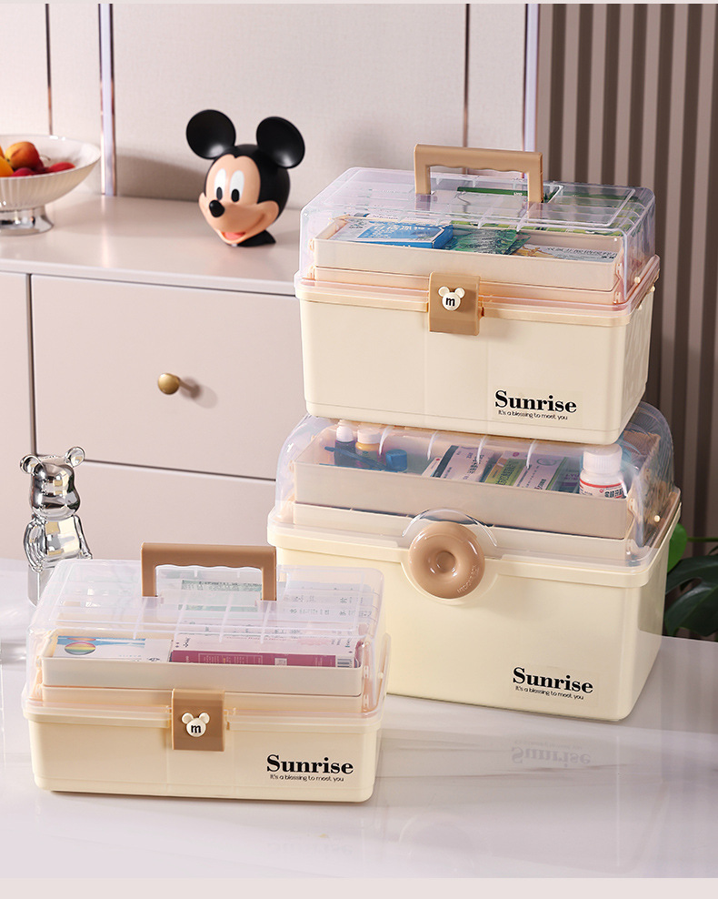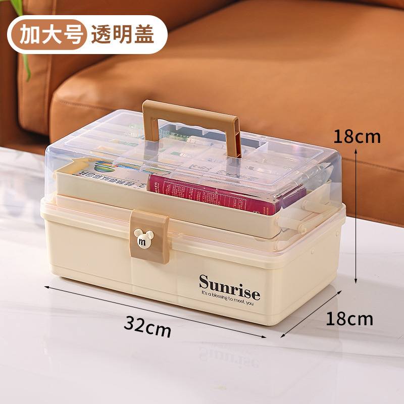 가정용 휴대용 투명한 3 층 다중 사용 저장 상자 직사각형 큰 접이식 저장 상자 가정용 약 상자 도구 상자