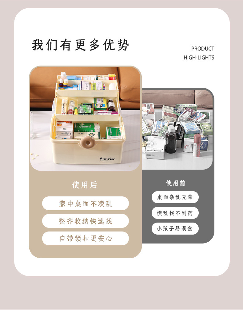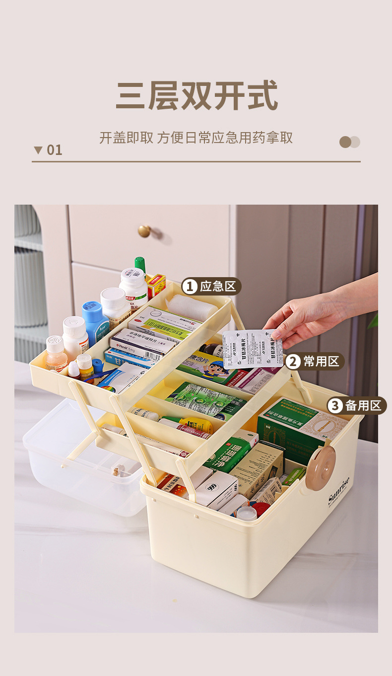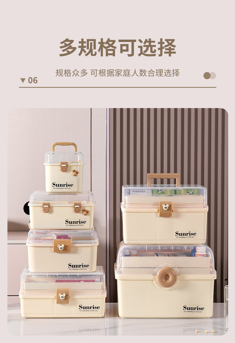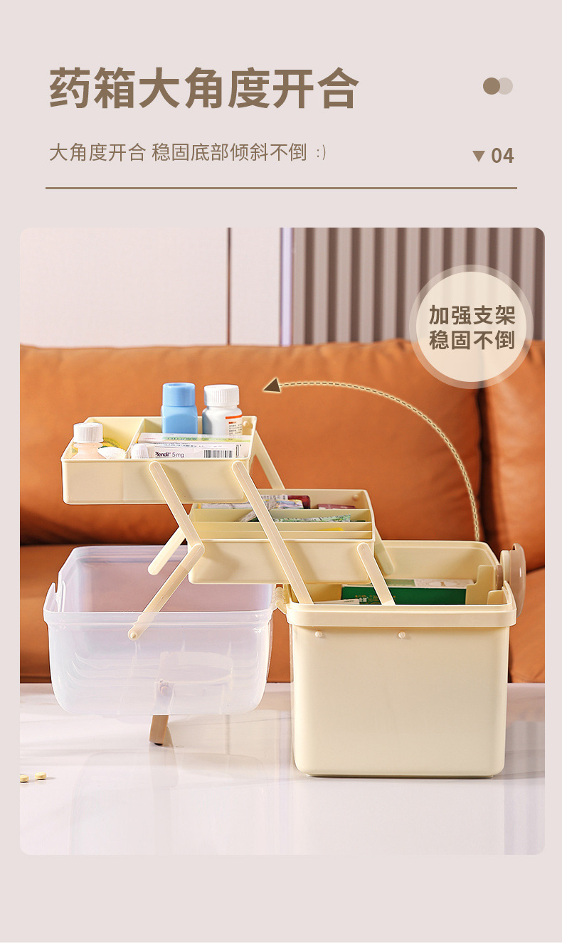 가정용 휴대용 투명한 3 층 다중 사용 저장 상자 직사각형 큰 접이식 저장 상자 가정용 약 상자 도구 상자