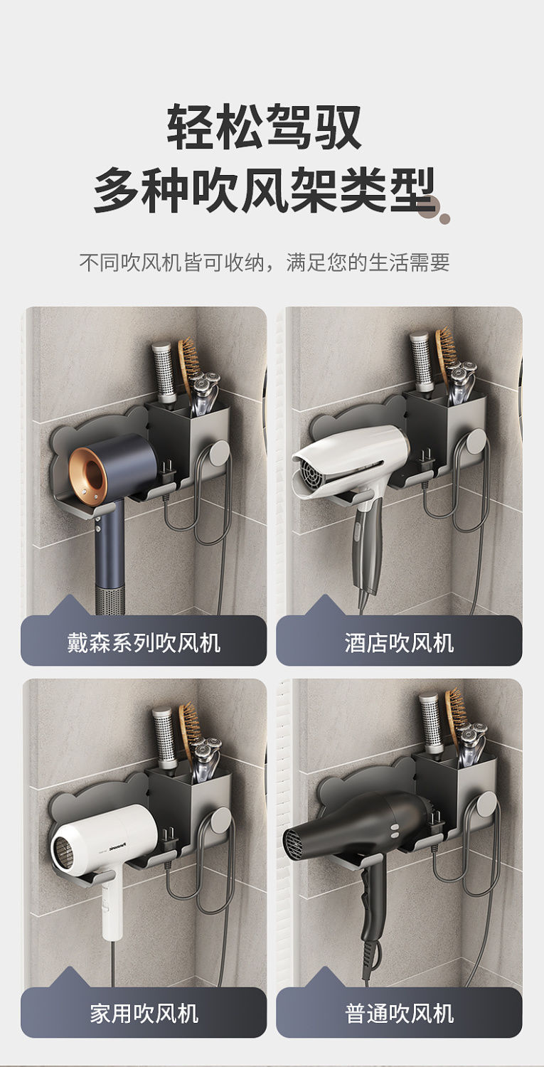 헤어 드라이어 보관 랙 벽 교수형 펀치 무료 욕실 걸이 랙 욕실 헤어 드라이어 브래킷 홈 헤어 드라이어 랙