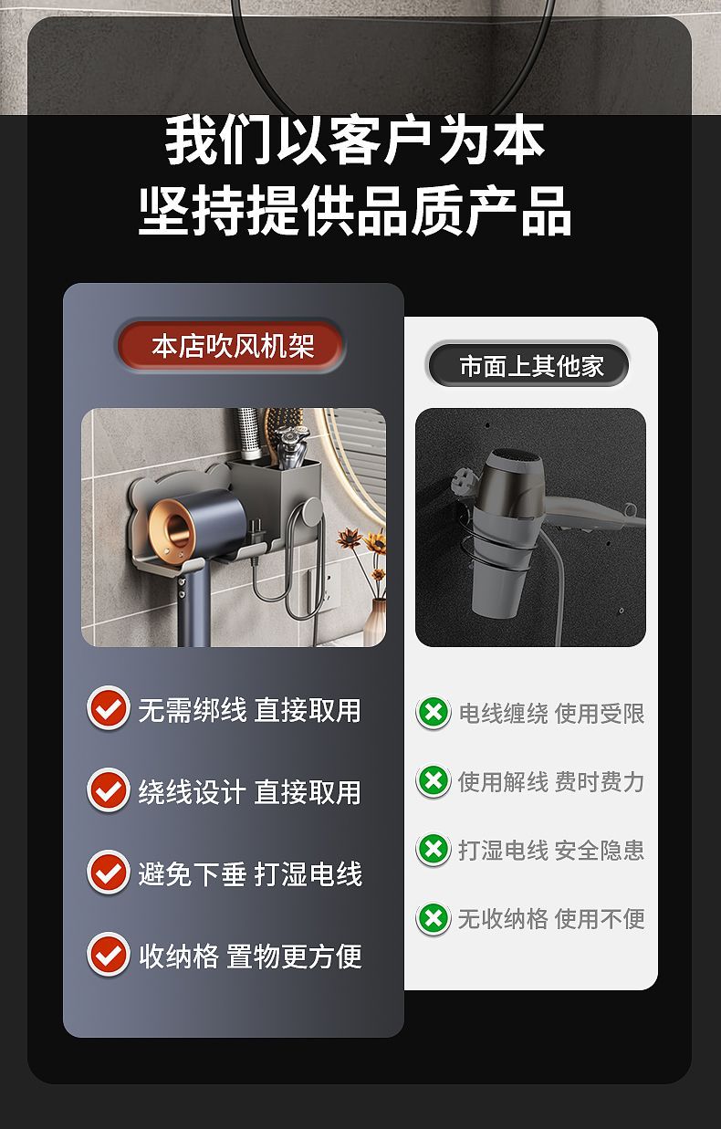 • 우아한 블랙 - 헤어드라이어 홀더 + 보관함 + 와이어 와인딩 컬럼
