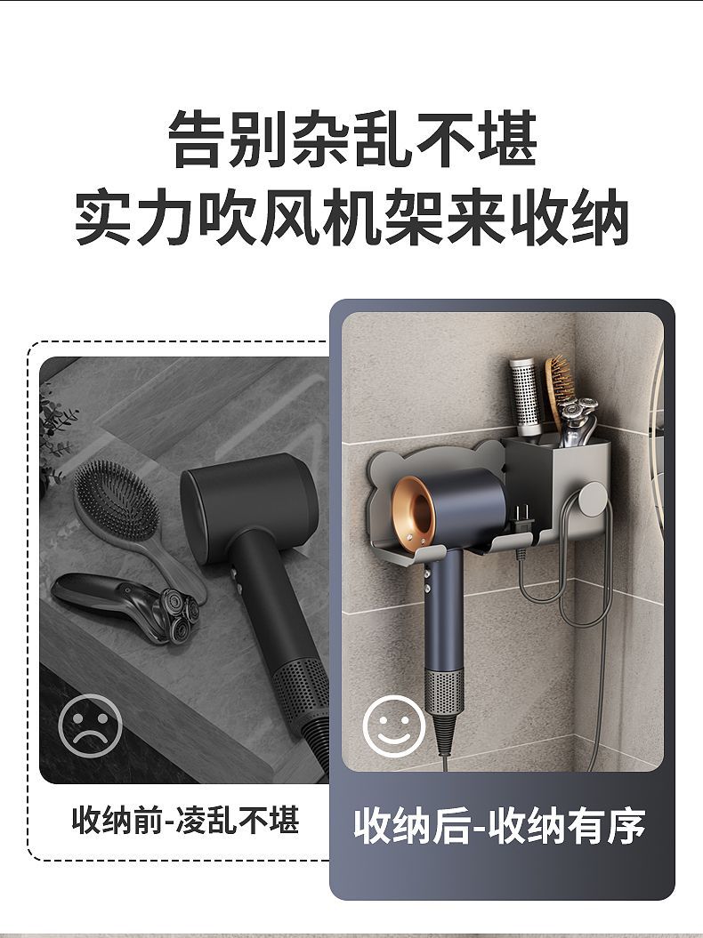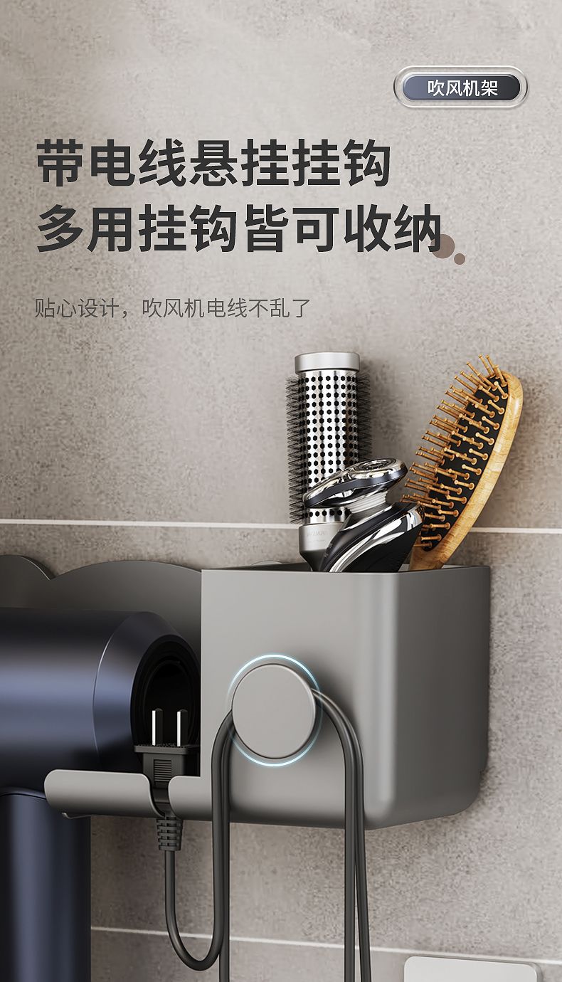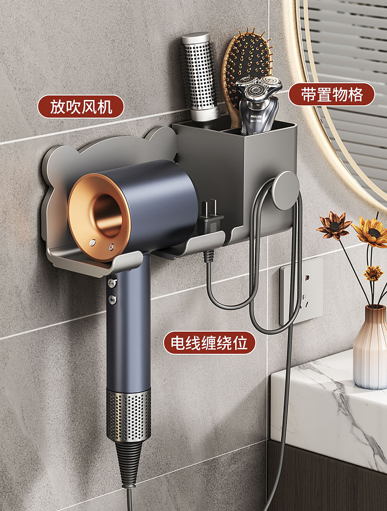 • 건그레이 - 헤어드라이어 홀더 + 보관함 + 와인딩 컬럼