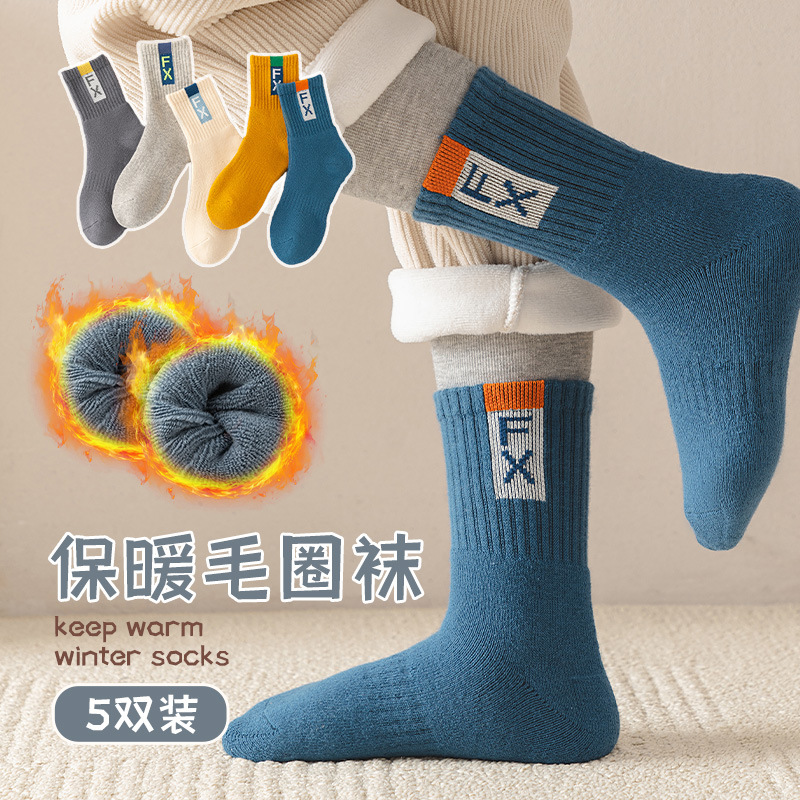 [폭발] 어린이 양말 소년 양말 통에서 소년 긴 튜브 따뜻한 두꺼운 기모 가을과 겨울 테리 양말