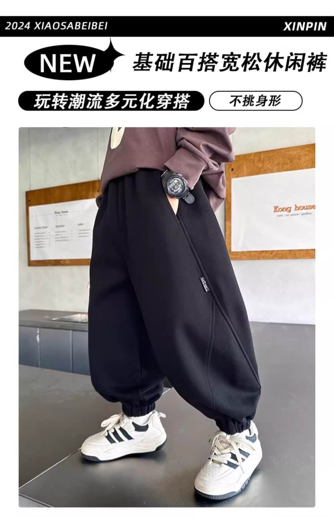 아동복 소년 바지 봄과 가을 어린이 봄과 가을 단색 스포츠 바지 2024 한국식 새 소년 캐주얼 바지