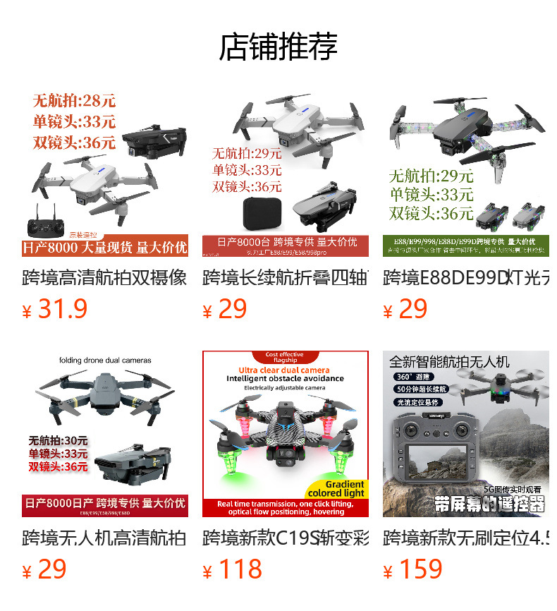 국경 간 접이식 드론 HD 듀얼 카메라 4 축 항공기 긴 내구성 e88 원격 제어 항공기 장난감스토어 가기