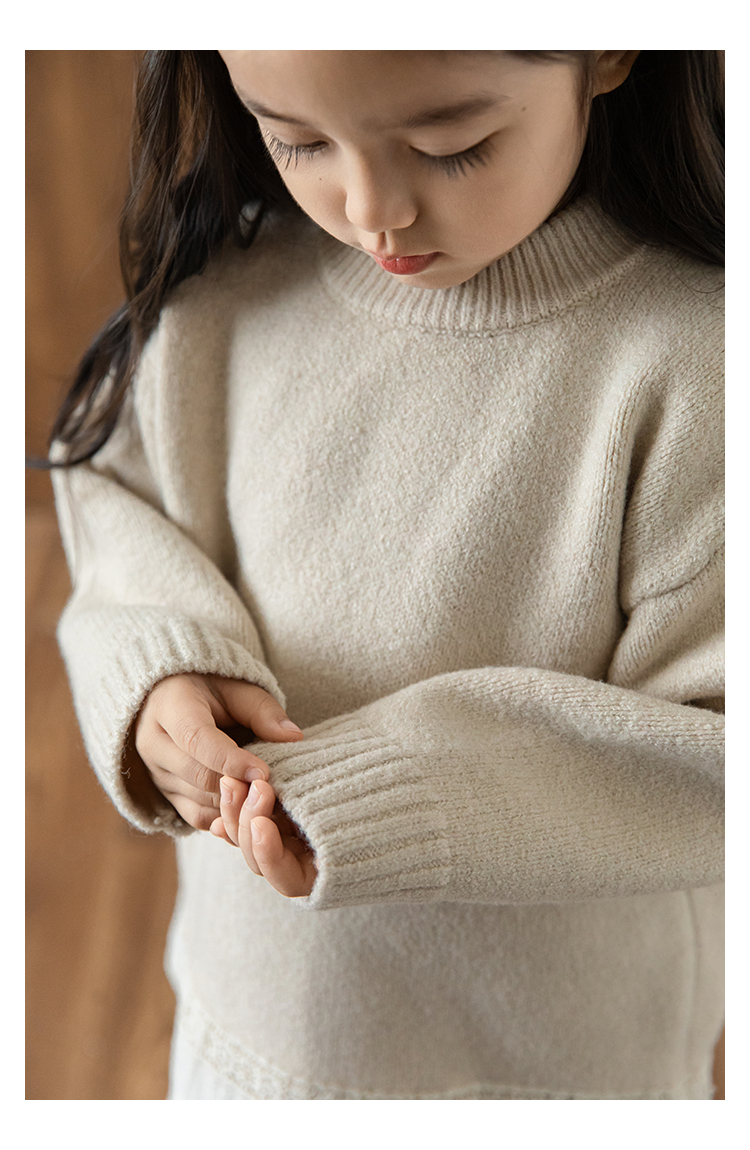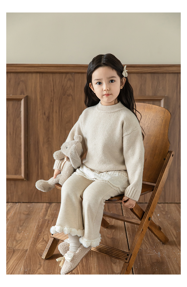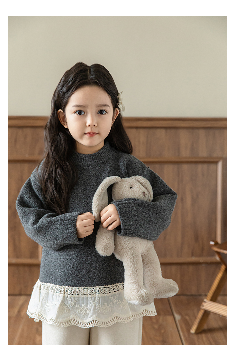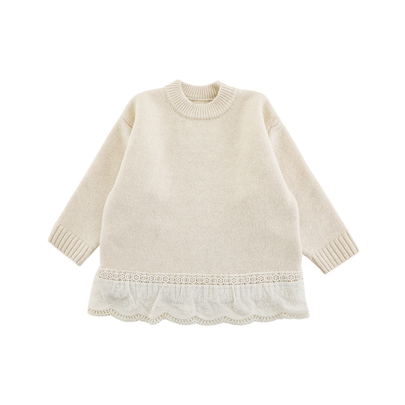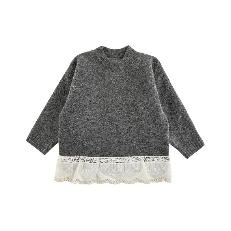 Wuri Bub 소녀 레이스 가짜 두 두꺼운 짠 푹신한 스웨터 2024 겨울 귀여운 따뜻한 코트