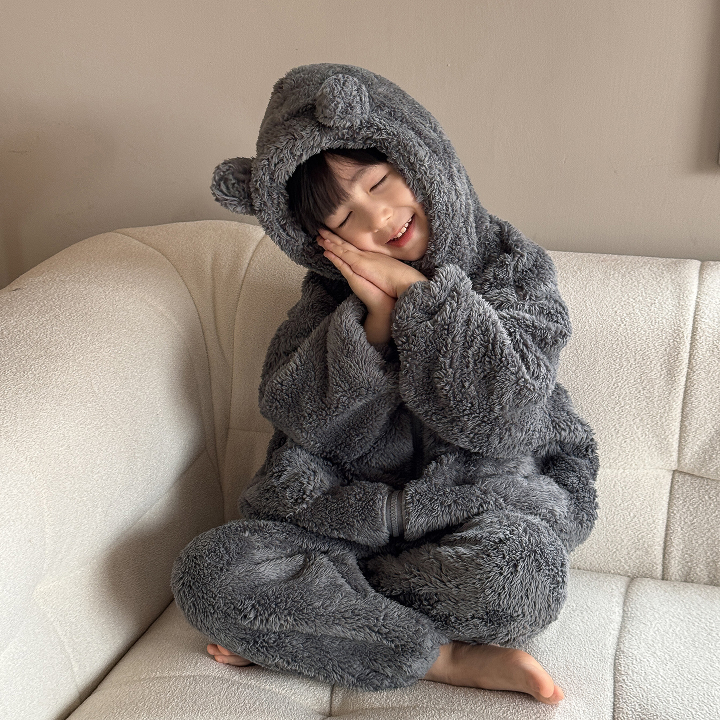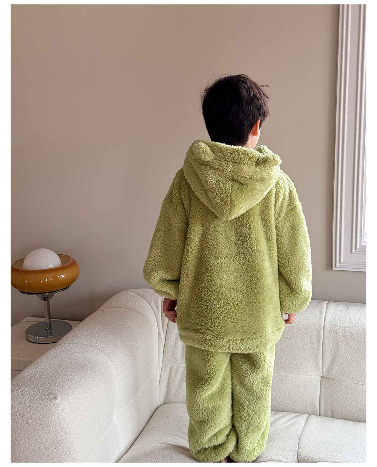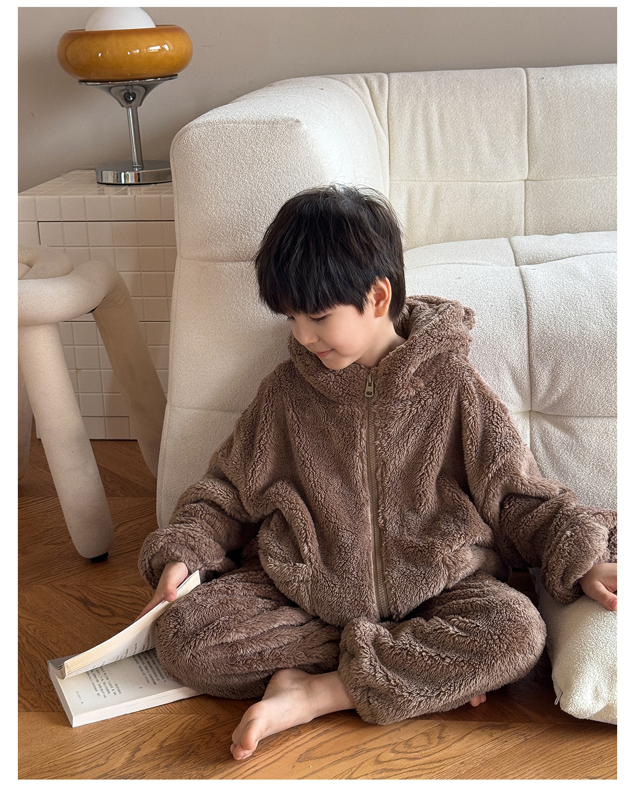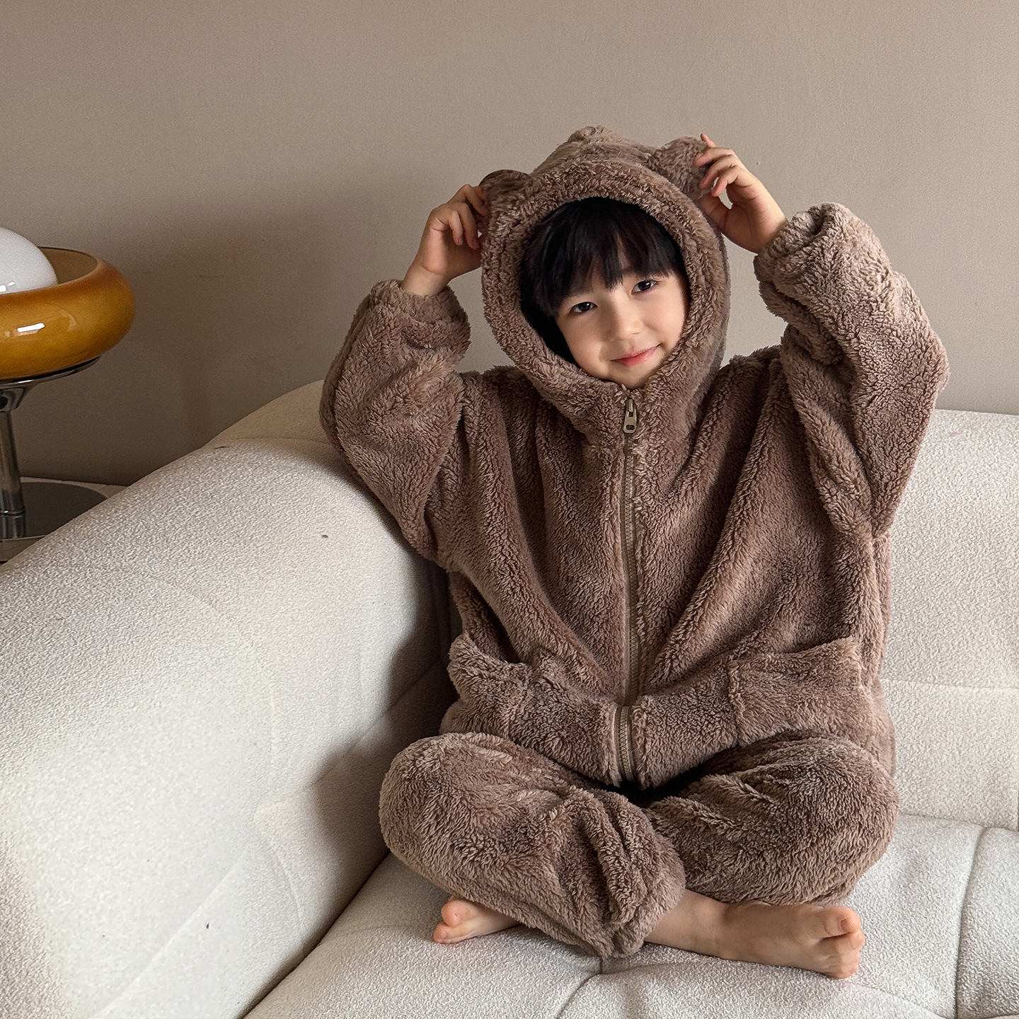 통쿠 2025 아동용 겨울 플러시 소프트 입체 귀 잠옷 두꺼운 단색 홈웨어 남아 세트스토어 가기