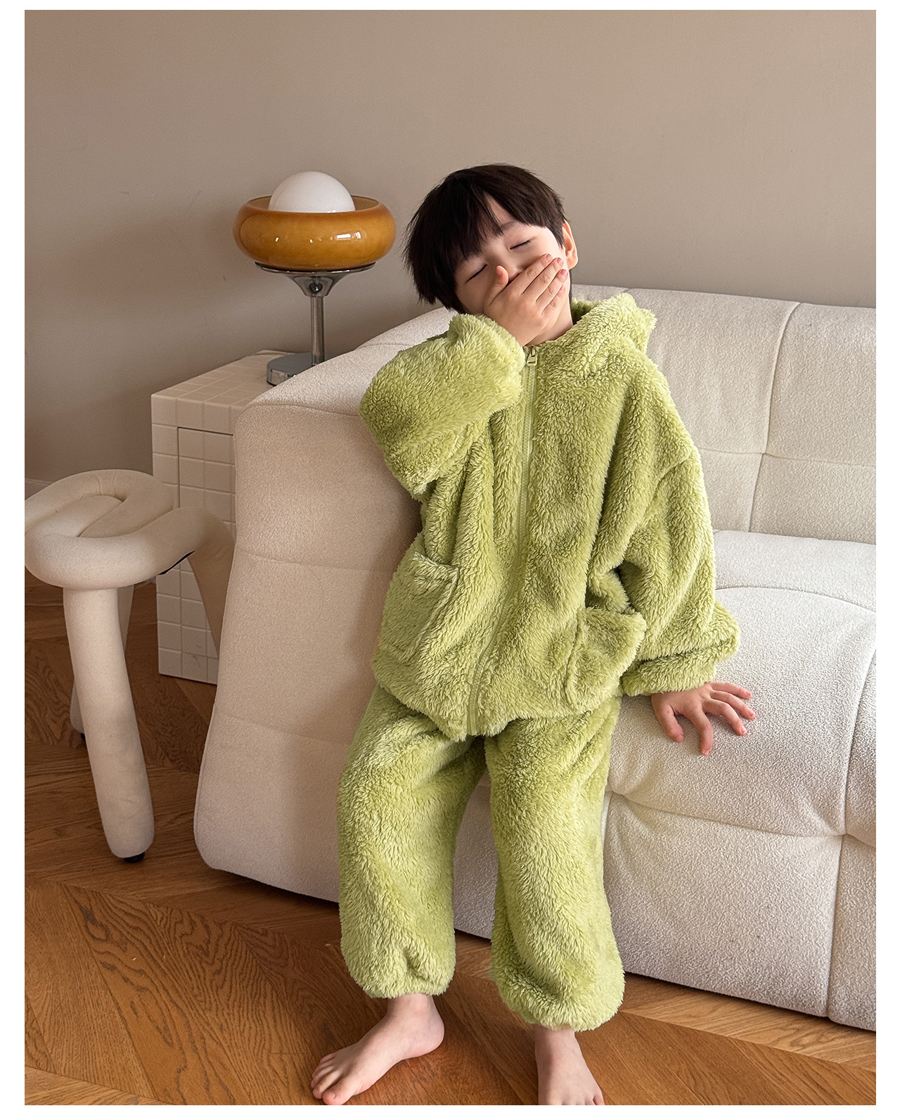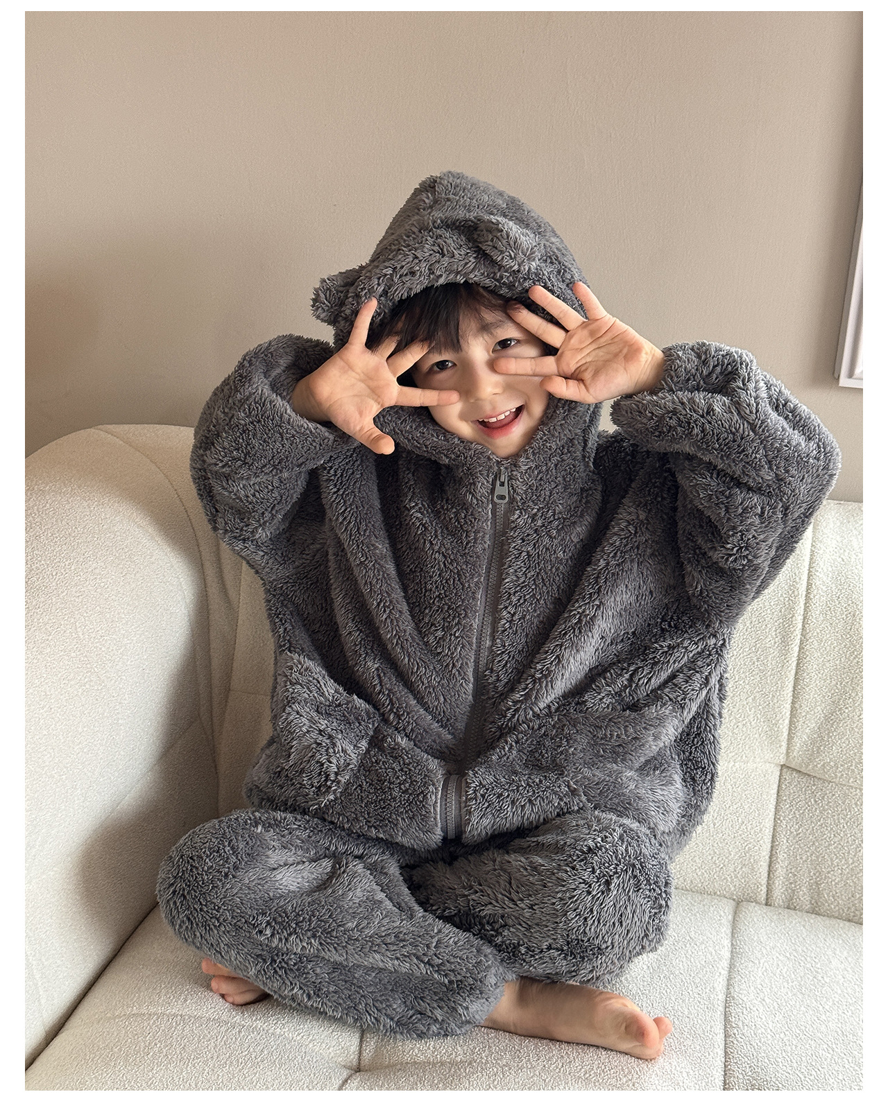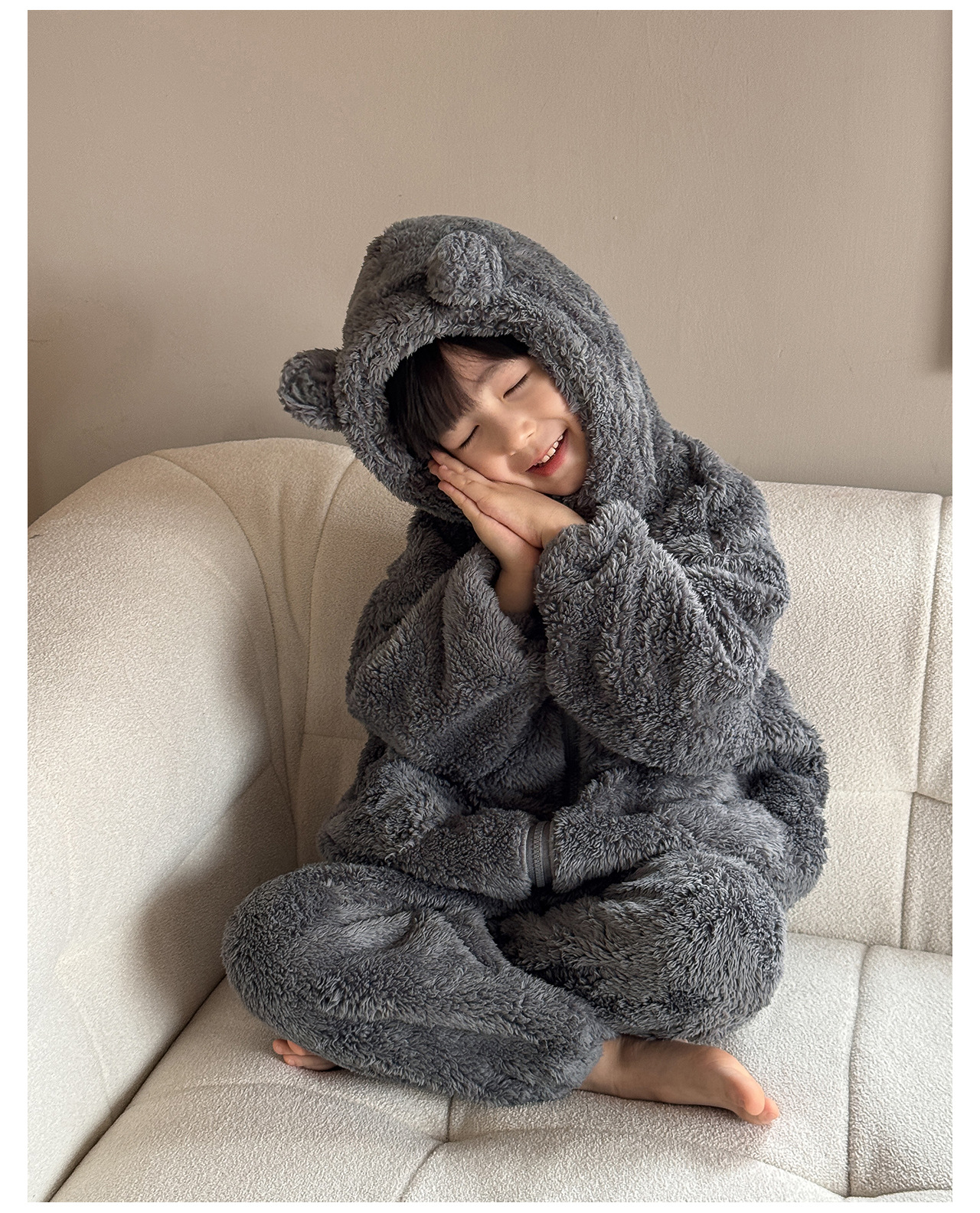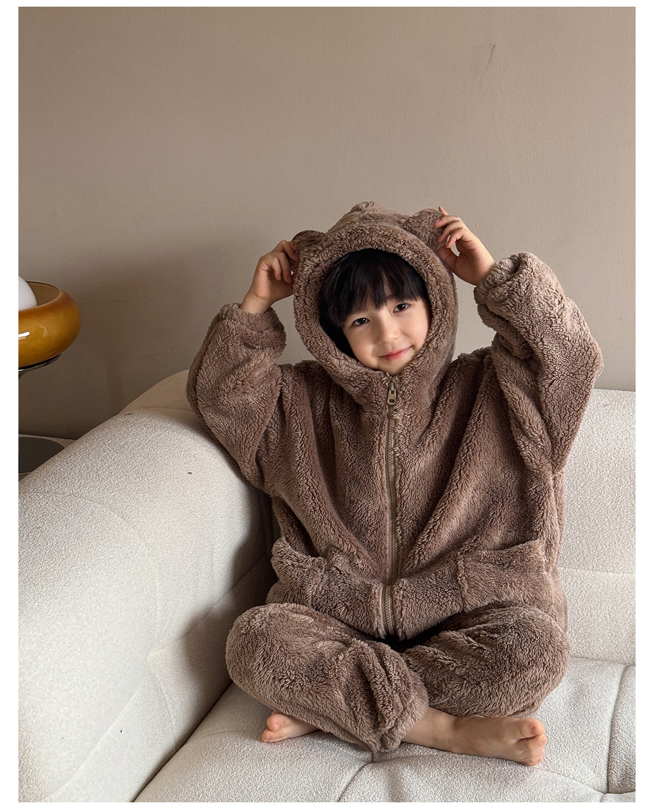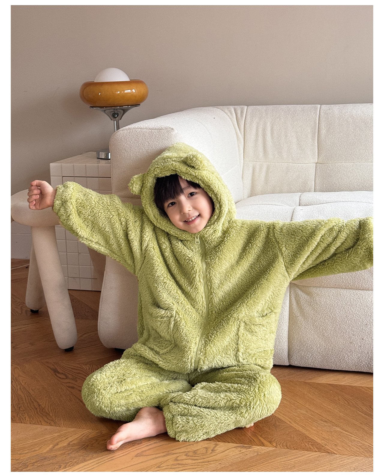 통쿠 2025 아동용 겨울 플러시 소프트 입체 귀 잠옷 두꺼운 단색 홈웨어 남아 세트스토어 가기