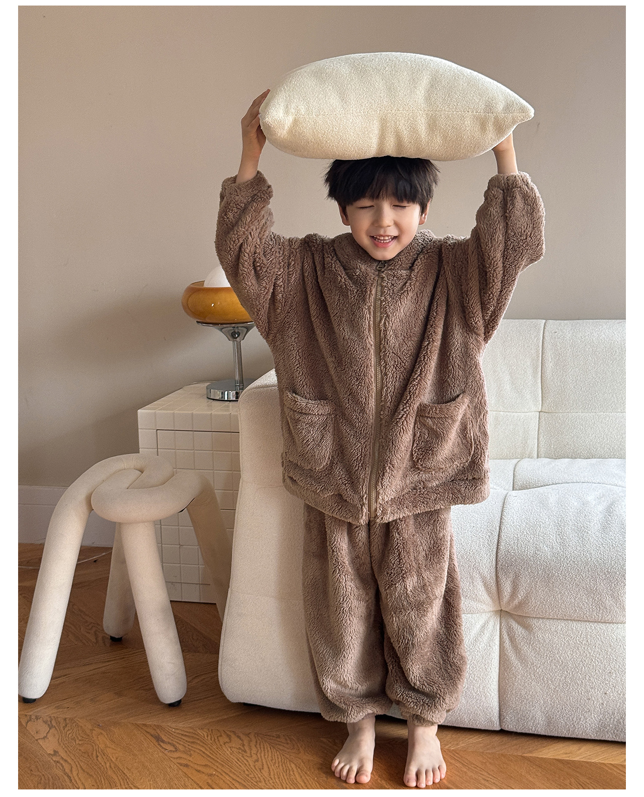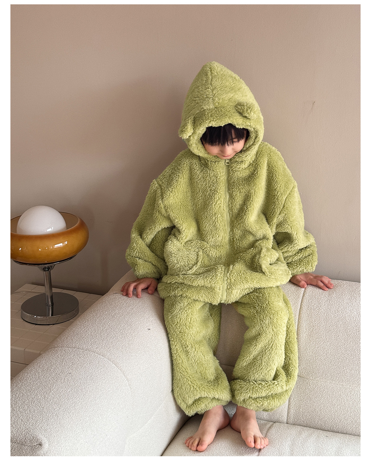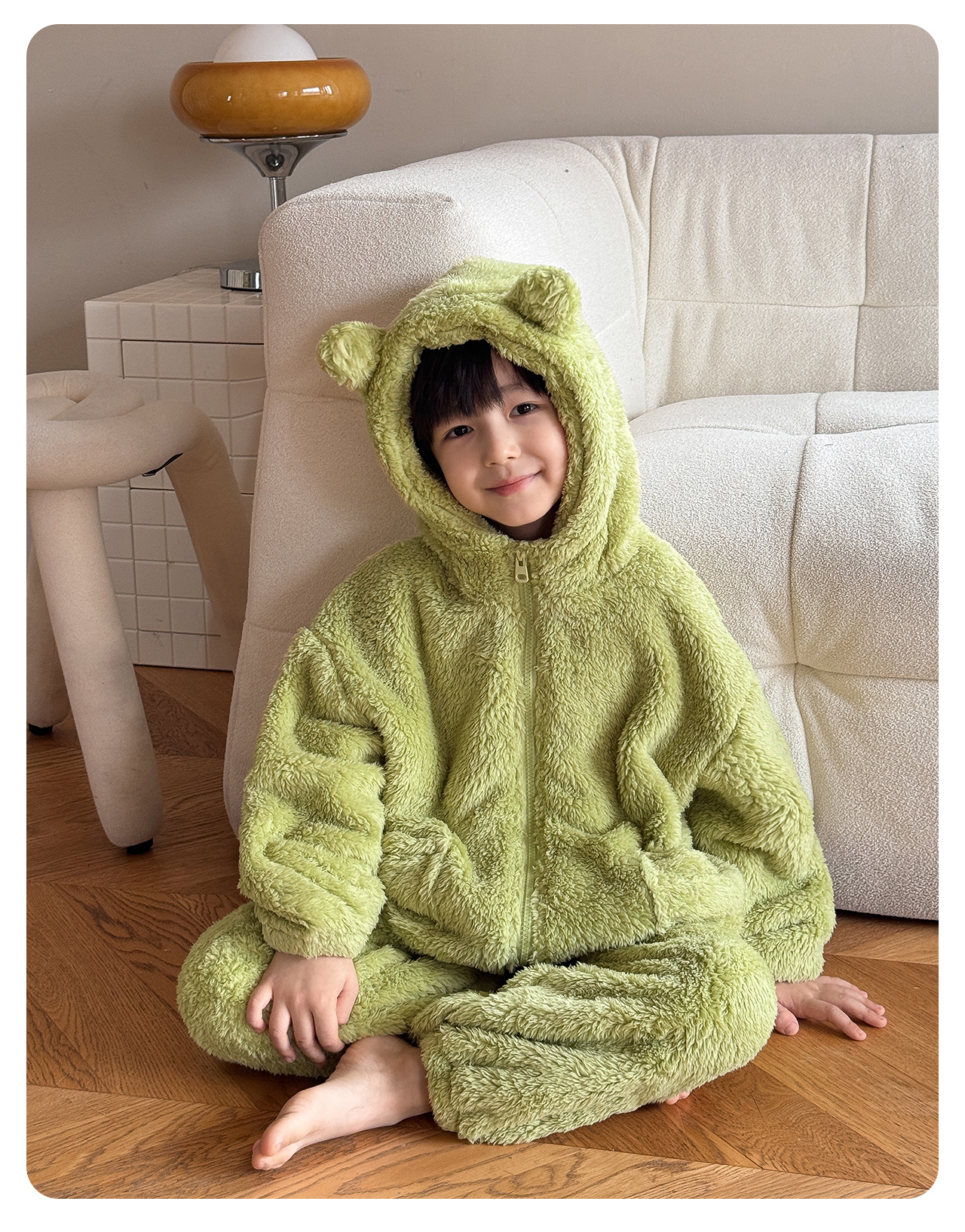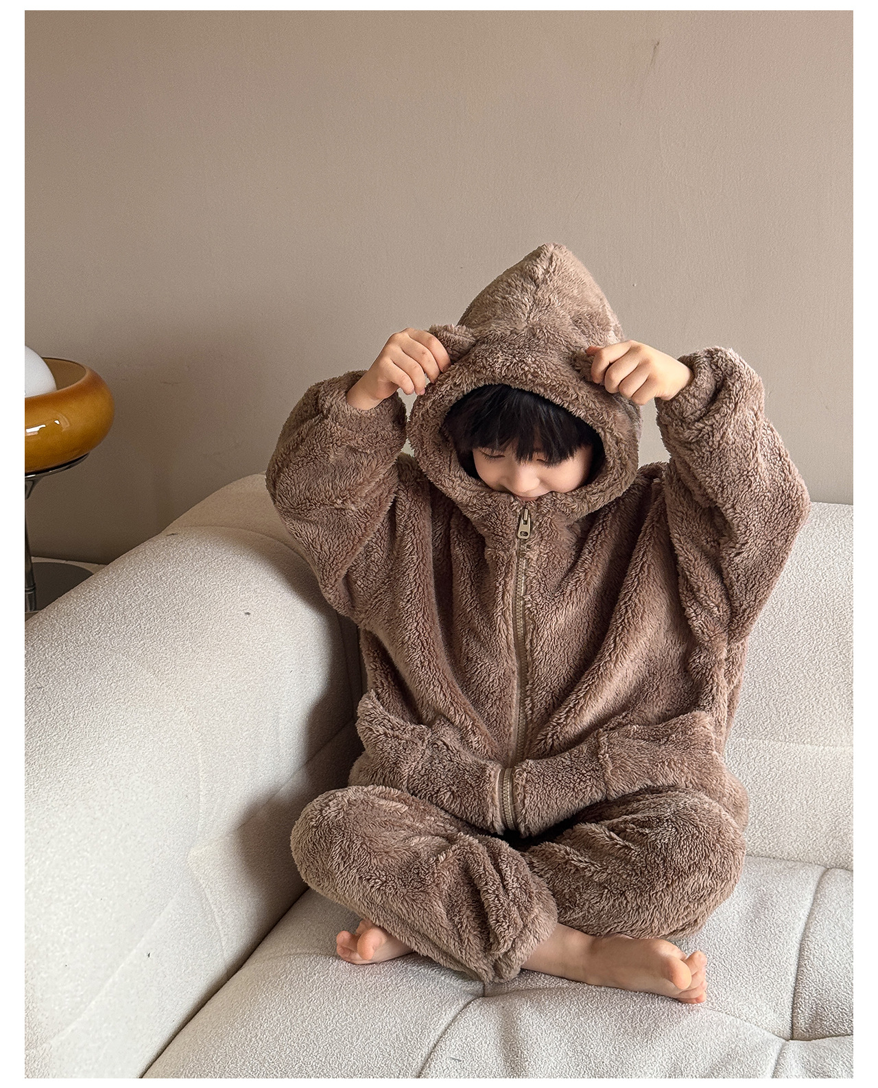 통쿠 2025 아동용 겨울 플러시 소프트 입체 귀 잠옷 두꺼운 단색 홈웨어 남아 세트스토어 가기