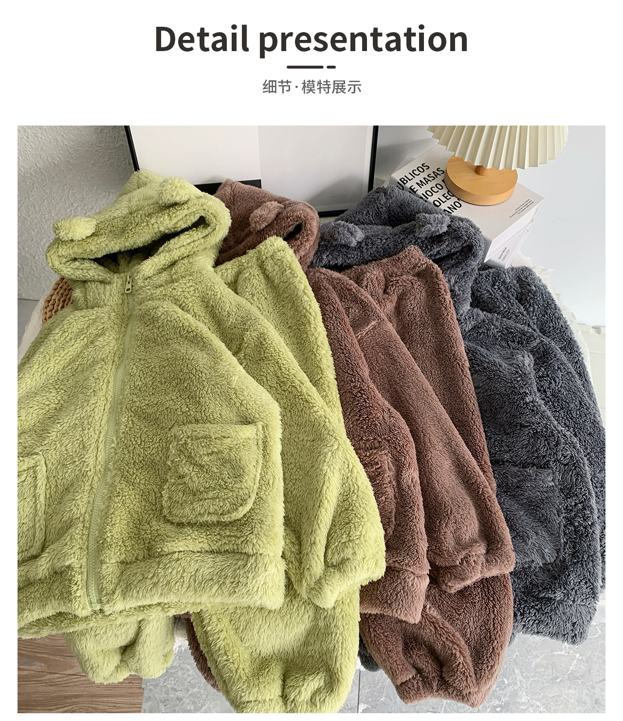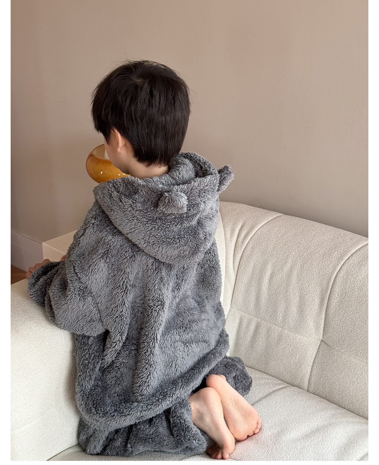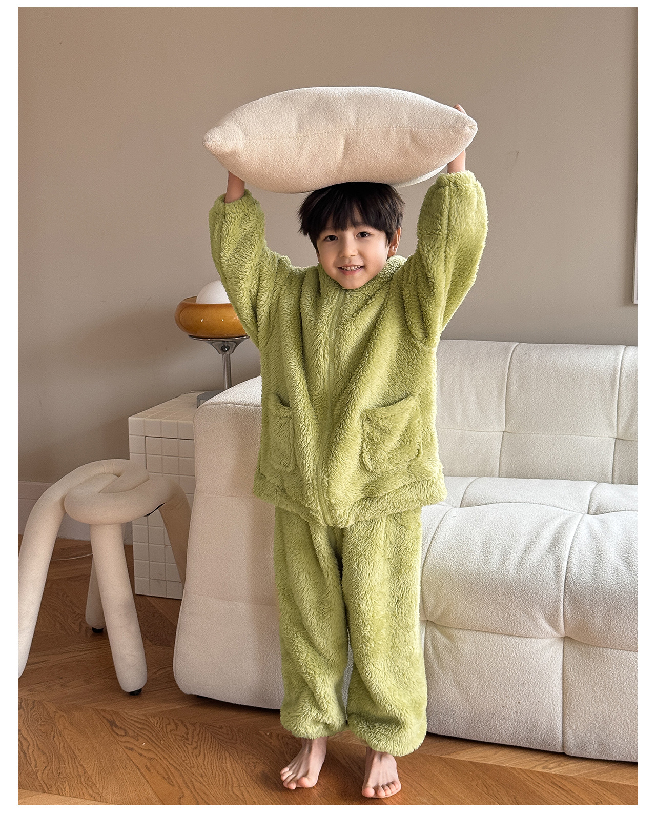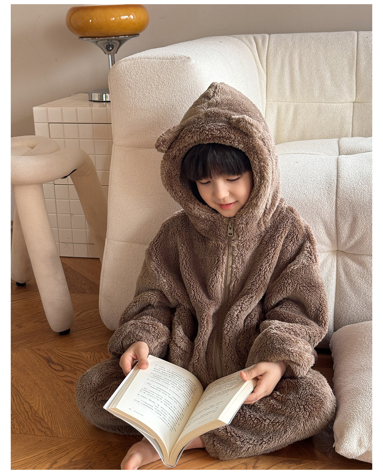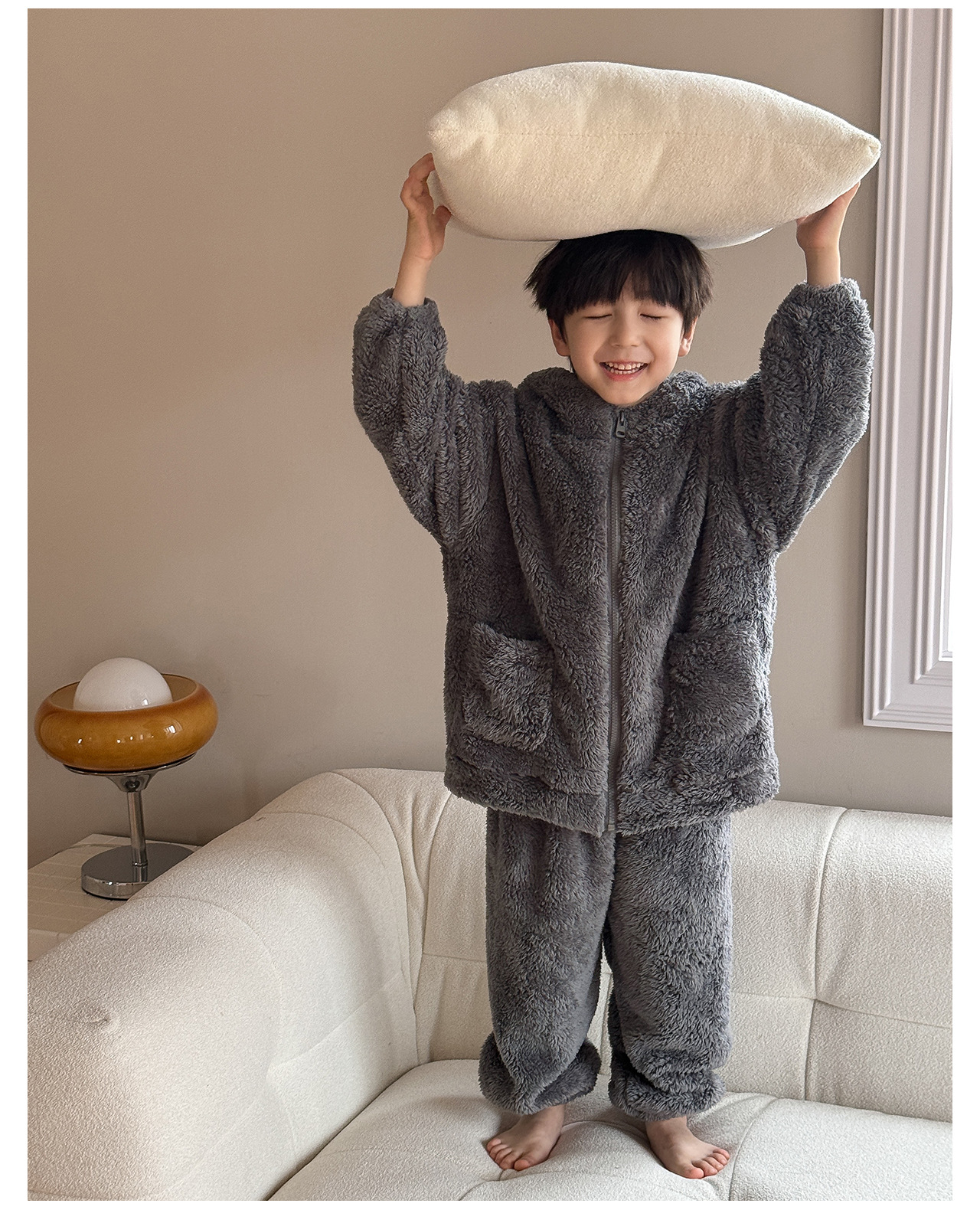 통쿠 2025 아동용 겨울 플러시 소프트 입체 귀 잠옷 두꺼운 단색 홈웨어 남아 세트스토어 가기