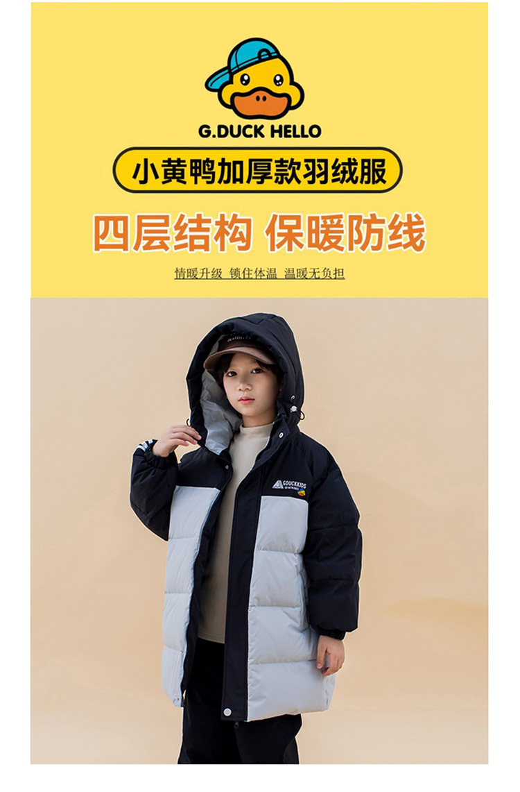 작은 노란 오리 어린이 다운 재킷 긴 두꺼운 매우 차가운 소년 중학생 화이트 덕 다운 재킷 겨울스토어 가기
