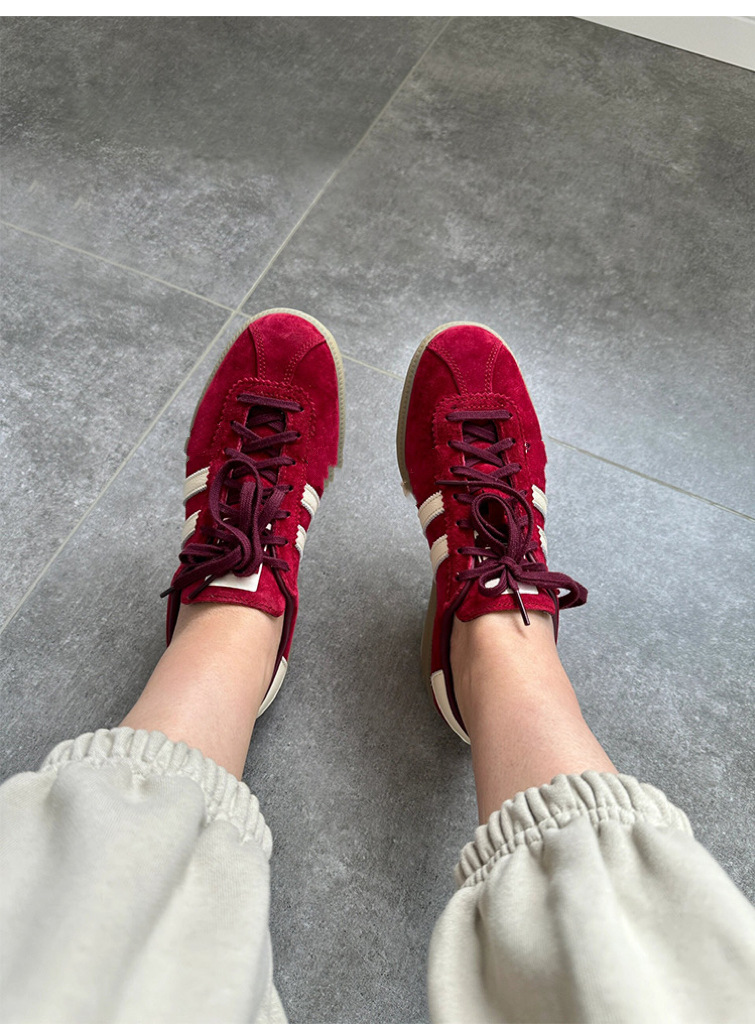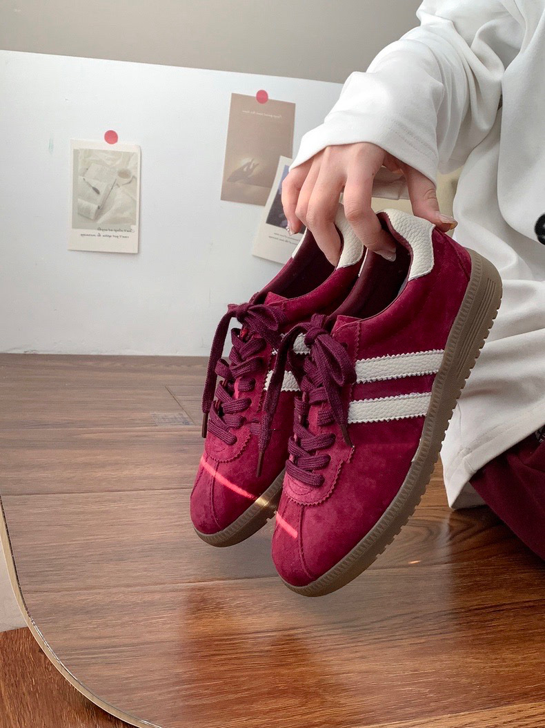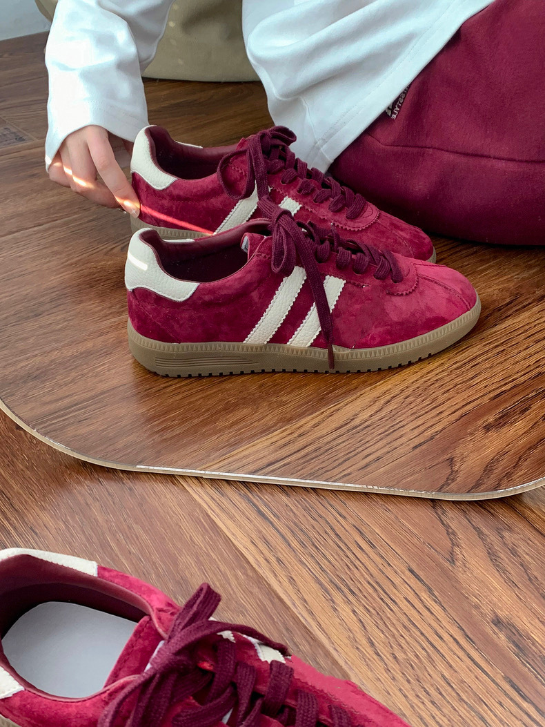 빈티지 레드 트레이닝 슈즈 여성의 2024 새로운 올 매치 가죽 스웨이드 레이스 업 캐주얼 플랫 운동화 포레스트 검프 스니커즈스토어 가기