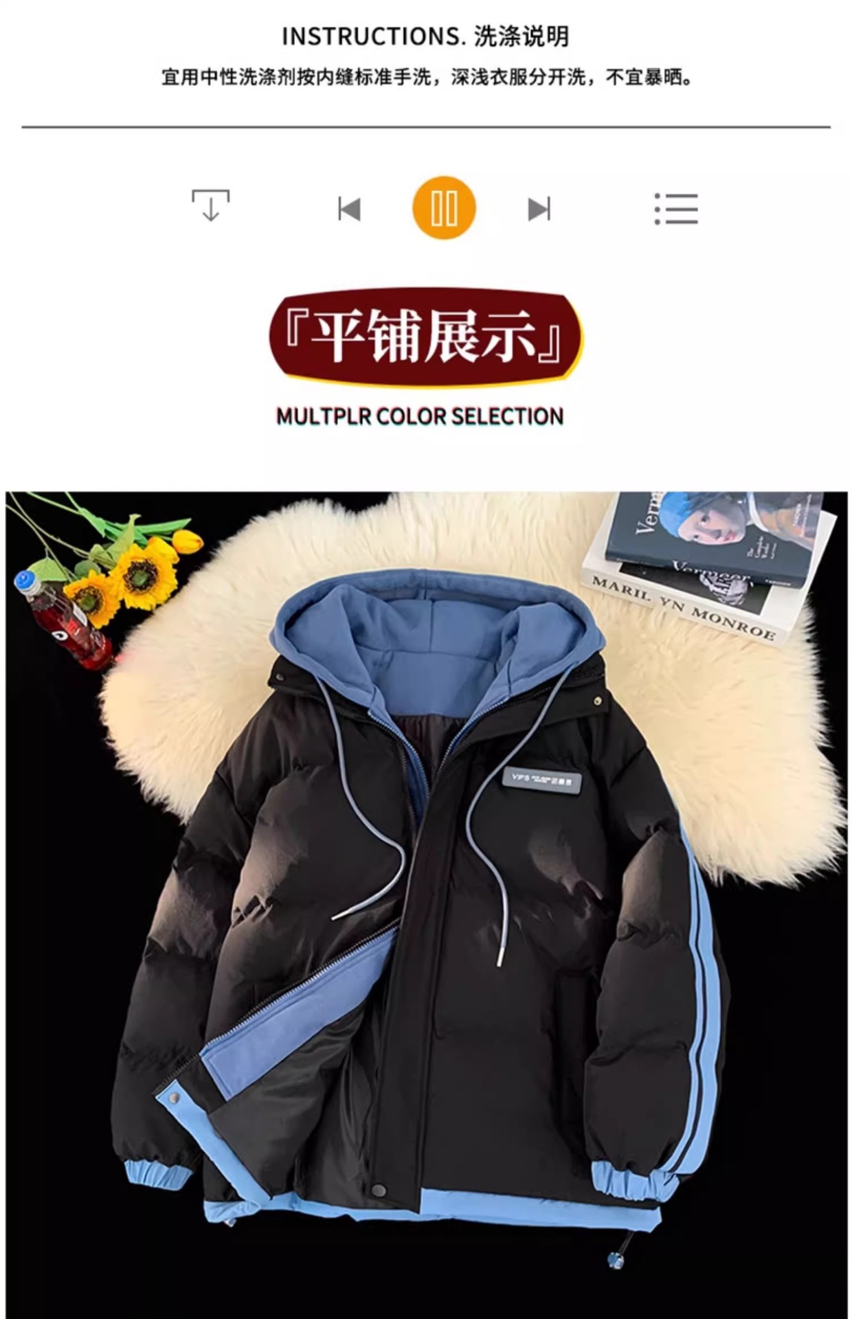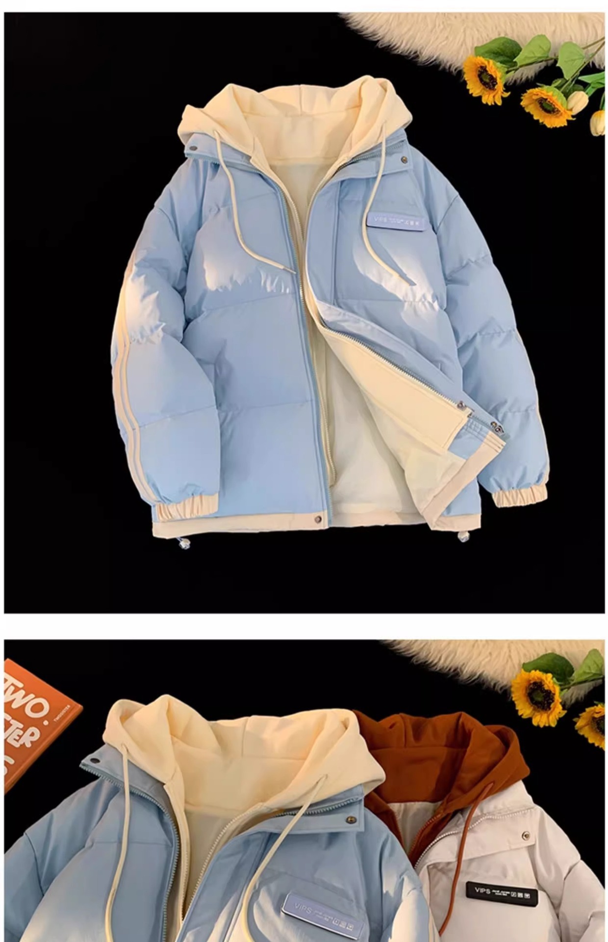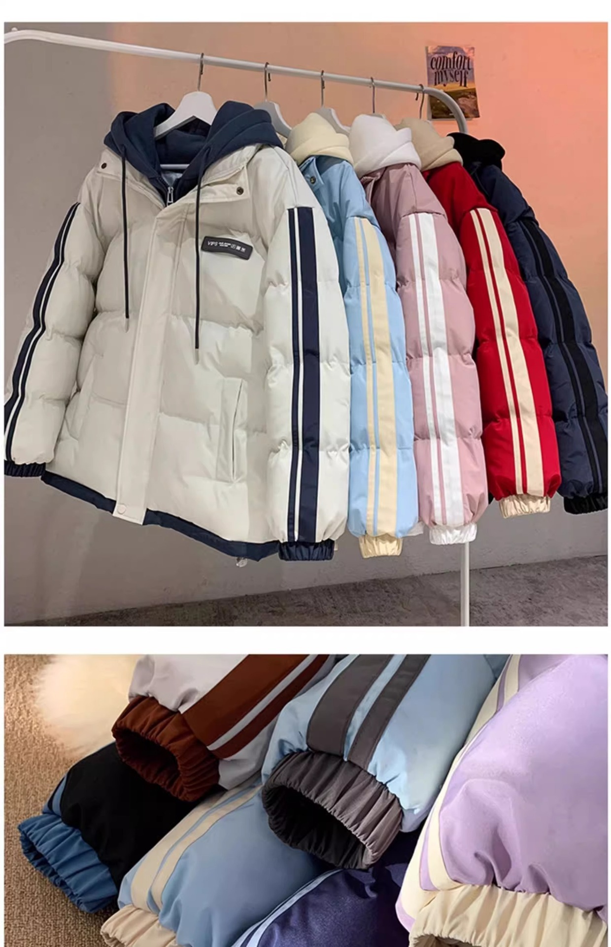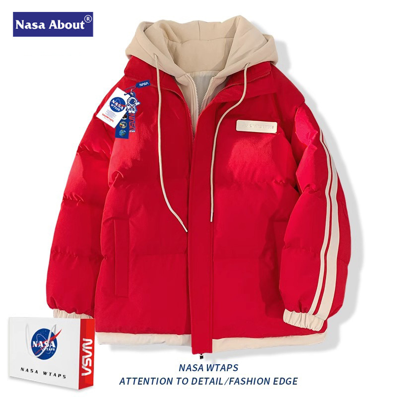 NASA 미국 스티칭 가짜 2 피스 코튼 패딩 재킷 남자 겨울 두꺼운 2024 새로운 따뜻한 코튼 패딩 자켓 코튼 패딩 재킷 커플 코트