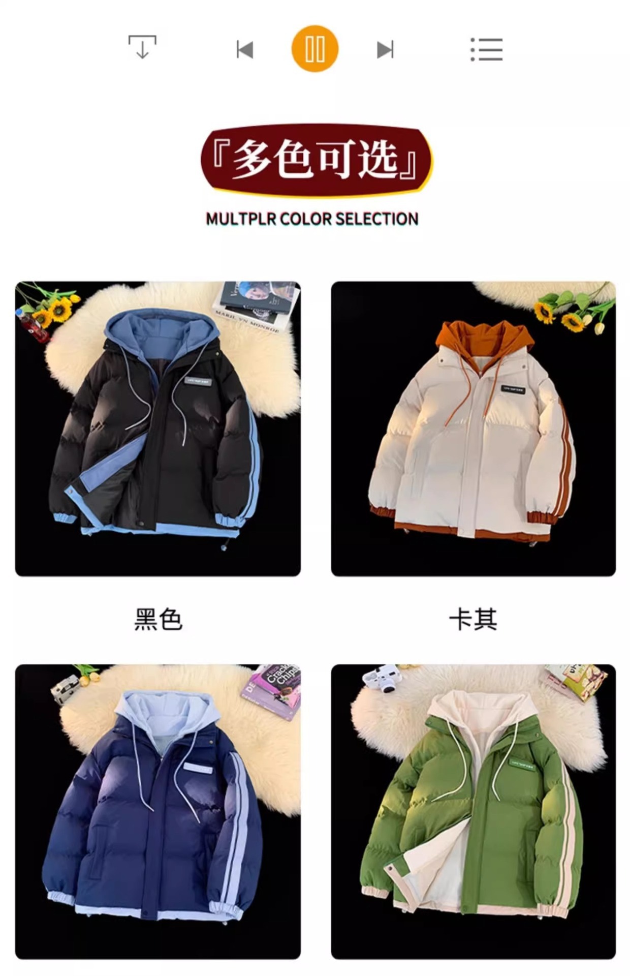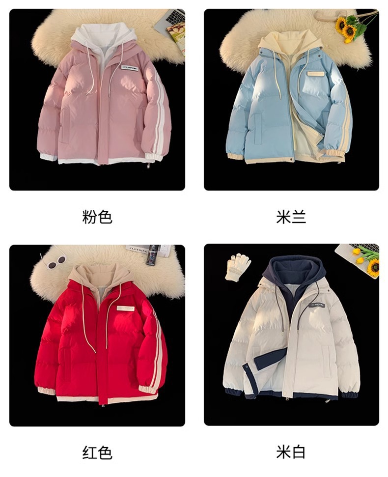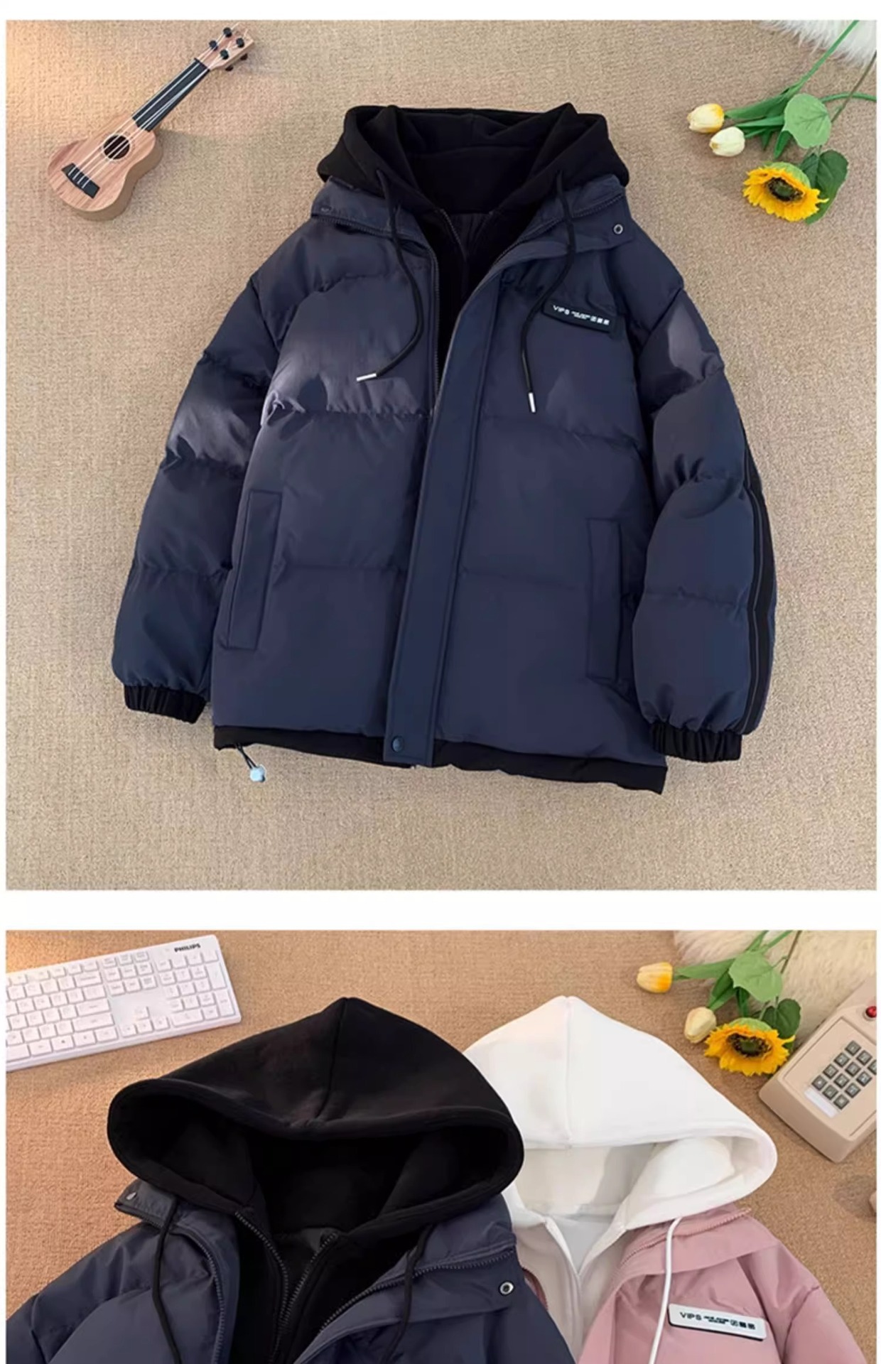 NASA 미국 스티칭 가짜 2 피스 코튼 패딩 재킷 남자 겨울 두꺼운 2024 새로운 따뜻한 코튼 패딩 자켓 코튼 패딩 재킷 커플 코트