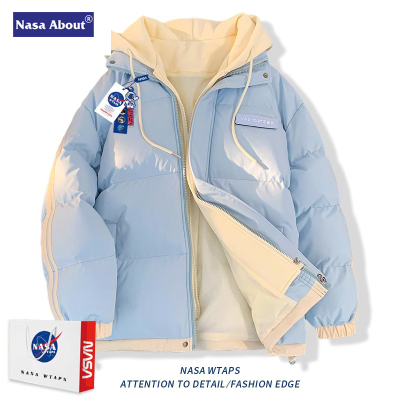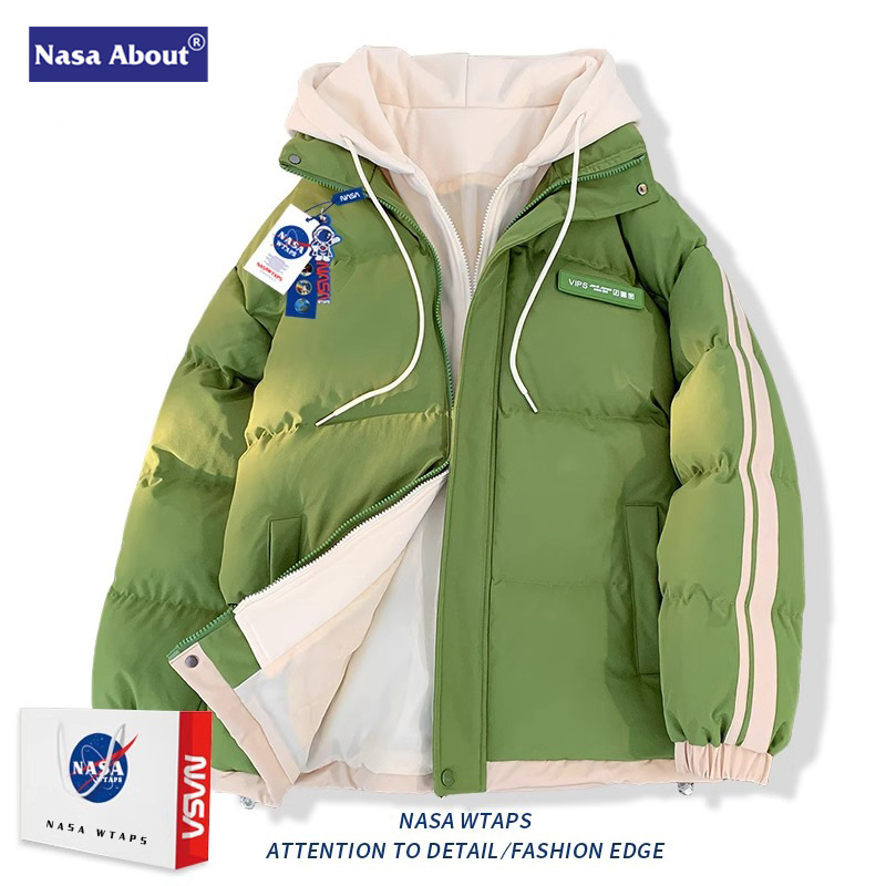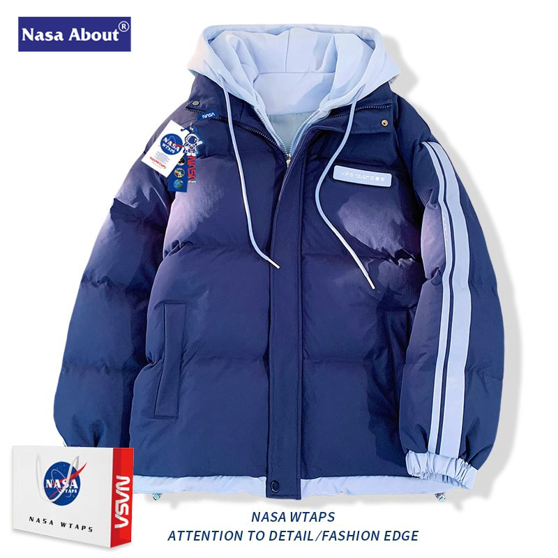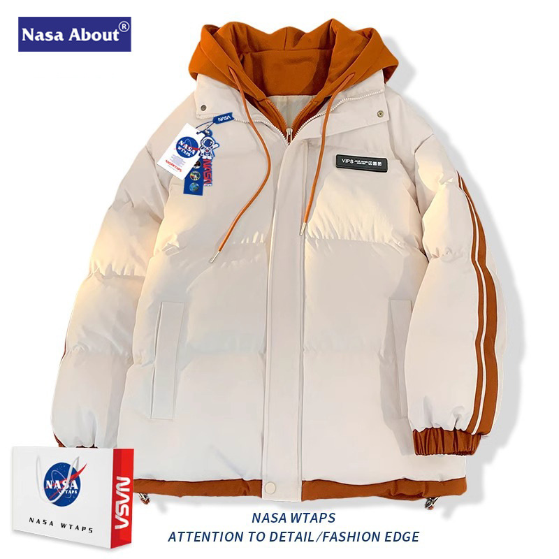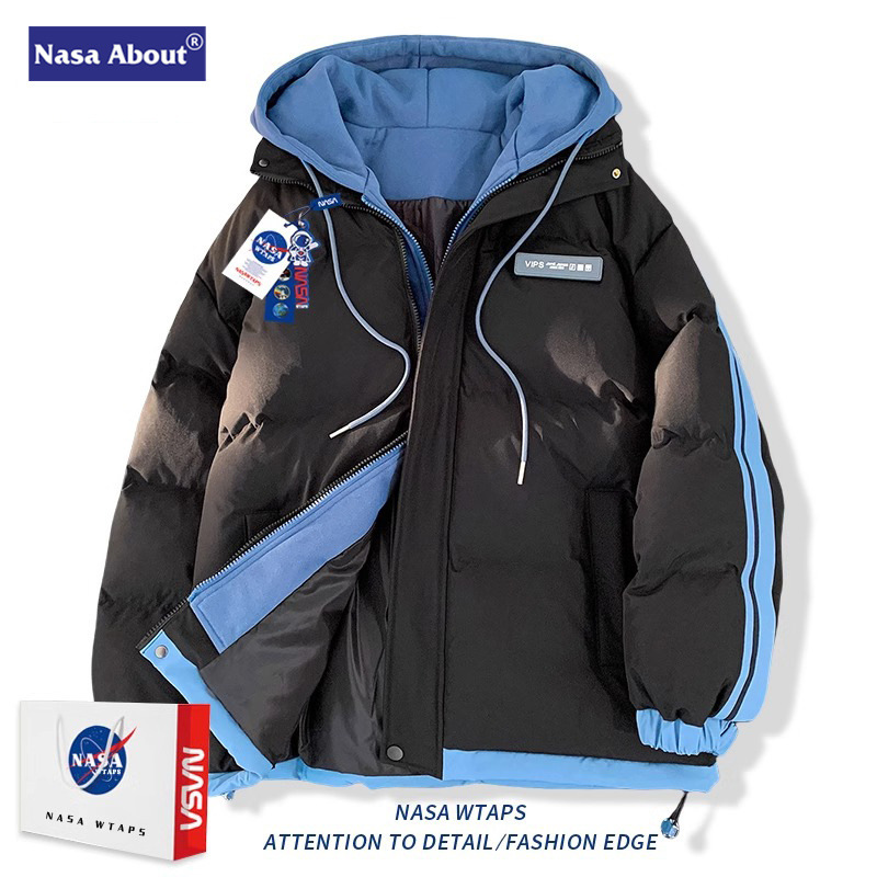 NASA 미국 스티칭 가짜 2 피스 코튼 패딩 재킷 남자 겨울 두꺼운 2024 새로운 따뜻한 코튼 패딩 자켓 코튼 패딩 재킷 커플 코트스토어 가기