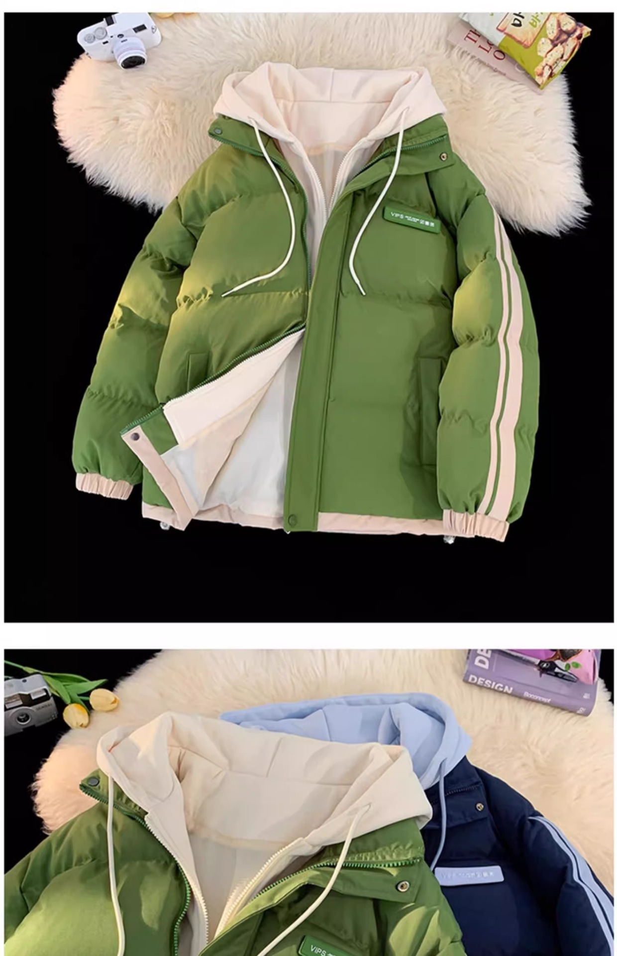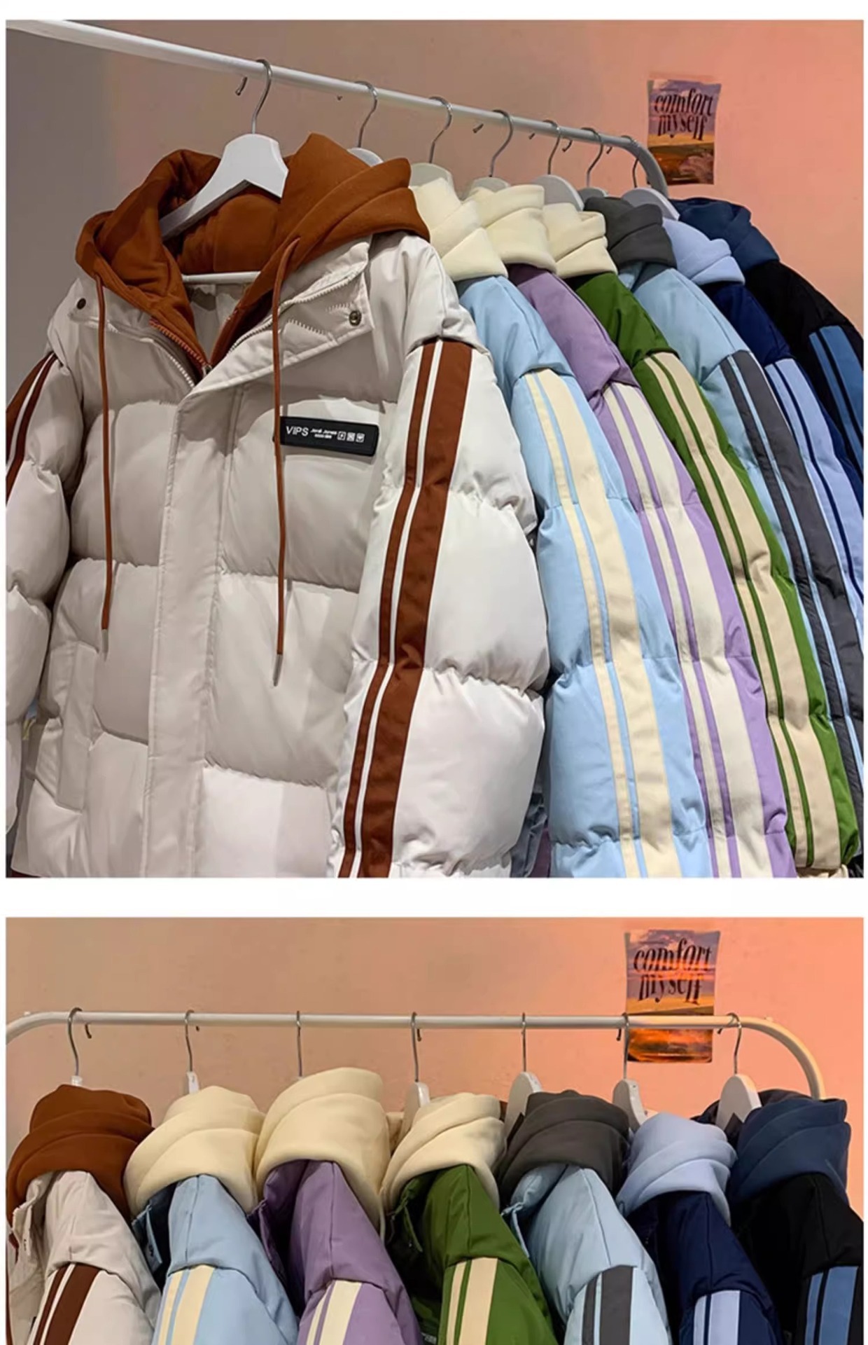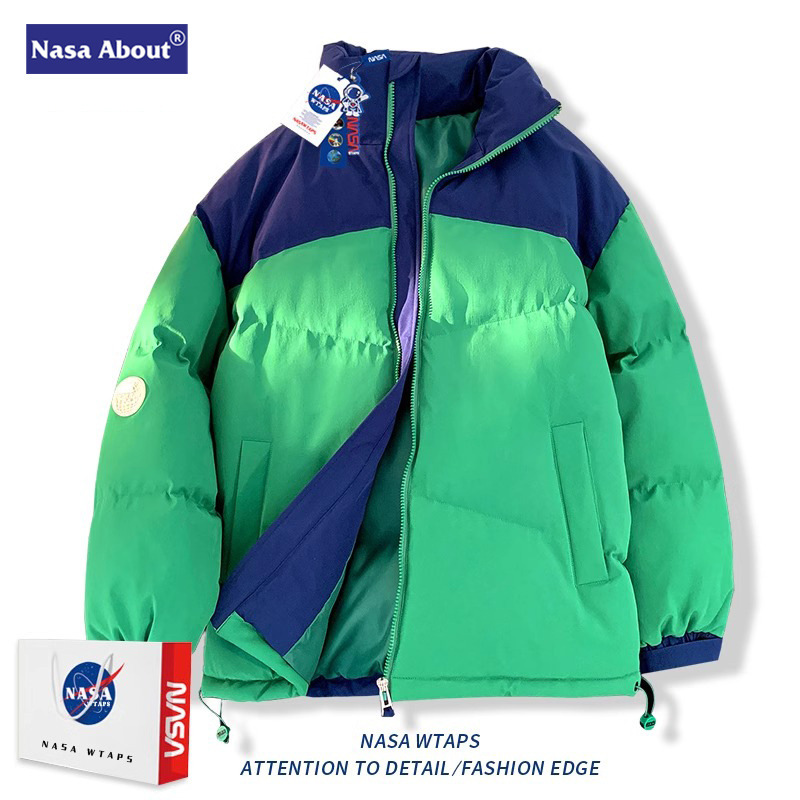NASA 미국 스티칭 가짜 2 피스 코튼 패딩 재킷 남자 겨울 두꺼운 2024 새로운 따뜻한 코튼 패딩 자켓 코튼 패딩 재킷 커플 코트스토어 가기