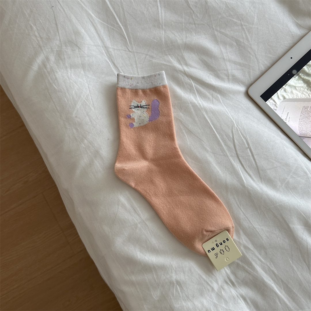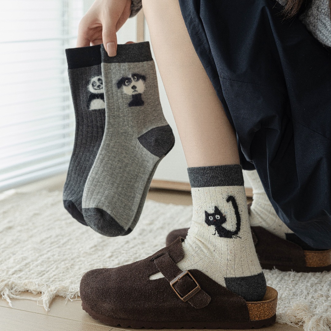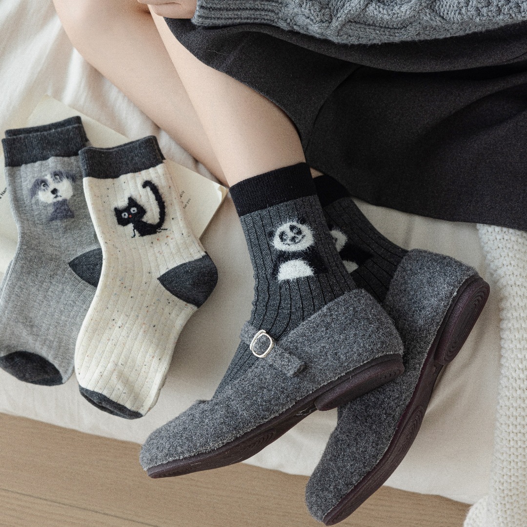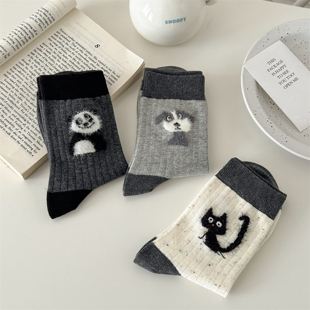 회색 귀여운 양말 어린이 중간 튜브 면화 양말 일본식 인 조수는 만화 팬더 원사 스타킹